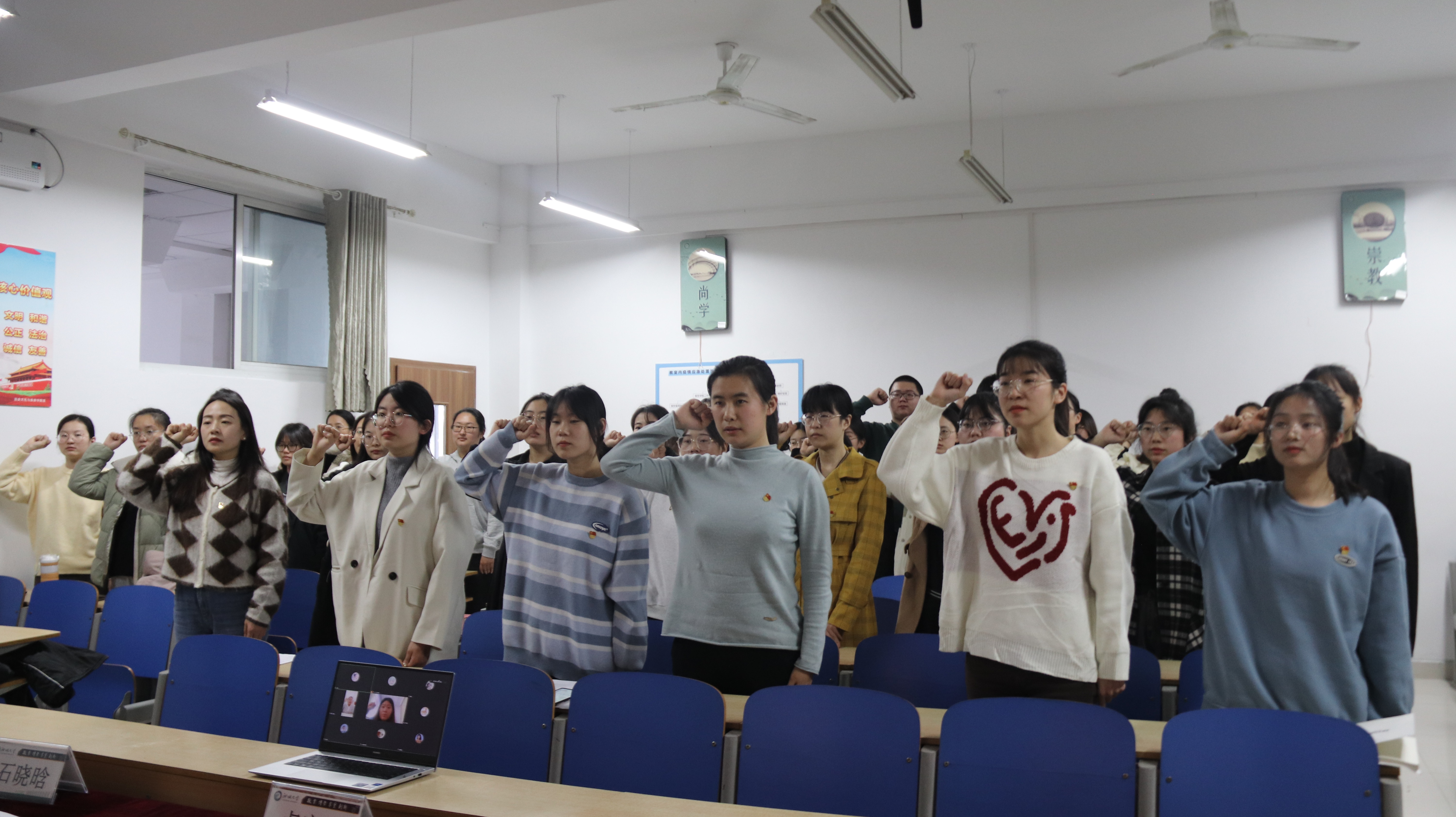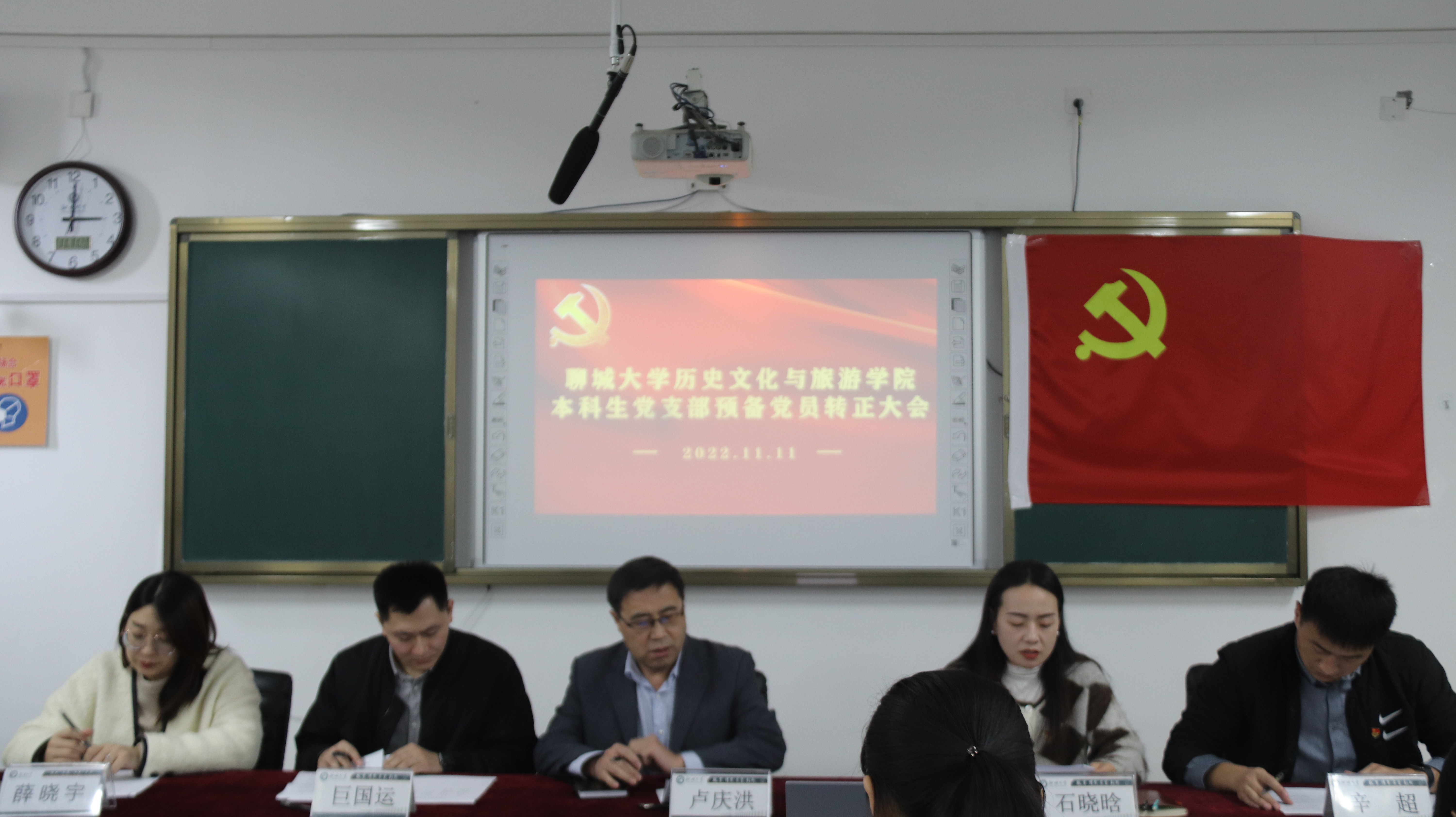 于6#A303召开本科生党支部预备党员转正及宣誓大会。学院党委副书记卢庆洪,本科生党支部书记石晓晗,辅导员巨国运、辛超、薛晓宇出席本次会议。大会审议并表决通过李佳一等14名同学按期转正事宜。本次大会由石晓晗同志主持。 大会秉承“公开、公平、公正”的原则,严格按照基层党组织的发展程序进行各项议程。石晓晗同志首先报告大会出席情况。随后预备党员同志逐一发言,汇报在预备期内的表现和需要向党组织阐明的问题,表明成为正式党员的决心。各入党介绍人对被介绍人预备期的考察情况进行客观公正的评价。在深入了解14位同志于预备考察期间的成长与发展情况后,参会党员展开讨论并以不记名投票的方式进行表决。经党支部表决,同意李佳一等14名同志按期转为中国共产党正式党员。 最后,党委副书记卢庆洪对按期转正的党员同志提出要求,要增强学习意识,在思想上、行动上同党中央保持高度一致,把党纪国法入脑入心,融入到工作的方方面面。惟此,方能增强政治敏锐性和政治鉴别力,也能常思贪欲之害。大会在党员的庄严宣誓中落下帷幕。 本次大会的顺利召开,为本科生党支部输送了新鲜血液,进一步扩大了党员队伍,增强党支部活力。希望党员同志们严格要求自己,切实发挥党员先锋模范带头作用,为小妲己直播
