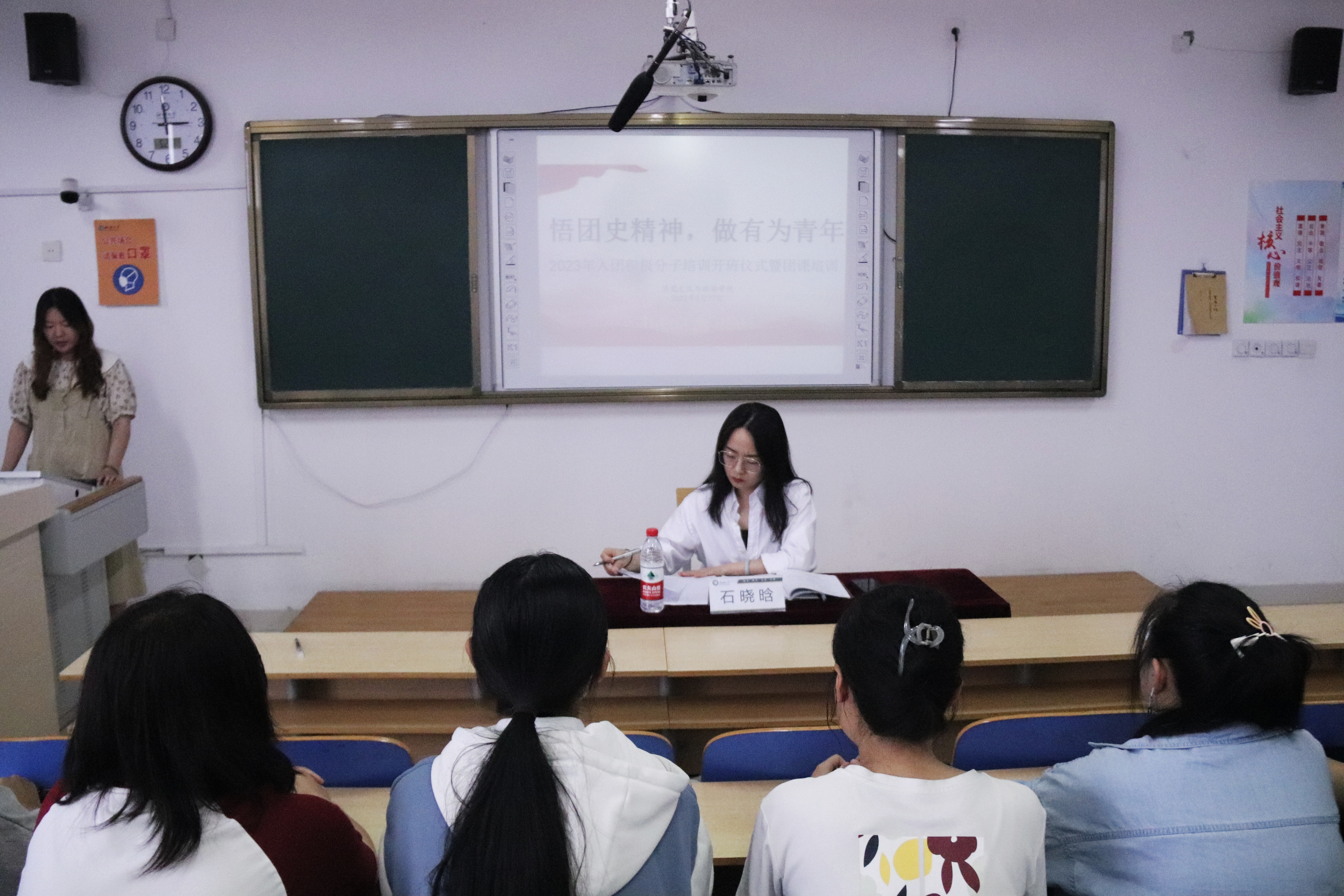 于6#A303举行2023年入团积极分子培训开班仪式暨团课培训。学院团委书记石晓晗出席开班仪式,全体入团积极分子参加。 开班仪式在庄严的国歌声中拉开序幕。会上,入团积极分子代表解浩然进行发言。她表示,希望能够早日加入团组织,实现为社会服务的理想追求,始终按照团的章程,认真履行团员义务,坚决执行团组织的决议,充分发挥共青团员的先锋模范作用。 随后,石晓晗对参与团课培训的同学提出以下三点要求:一是筑牢理想信念,坚定政治信仰,始终以习近平新时代中国特色社会主义思想为指导;二是珍惜学习机会,严于律己,提高政治素养;三是立足个人实际,保持思想和行动上的先进性,争做有理想、敢担当、能吃苦、肯奋斗的新时代好青年。 开班仪式结束后,入团第一课正式开始。刘思宜为同学们带来团课第一讲——《悟团史精神,做有为青年》。她带领同学们深入学习共青团的光辉历程,加深对共青团的认识,引导其树立正确的团史观。最后,她讲到,成为一名合格的共青团员应坚定共产主义理想和社会主义信念,保持蓬勃向上的工作劲头,带领团内成员朝着希望的方向奋进。 此次开班仪式和团课第一讲的顺利举行,进一步夯实了同学们的理论基础,加以端正同学们的入团动机。相信同学们能够珍惜此次学习机会,在入团积极分子培训中学出忠诚信仰,学出使命担当,学出奋勇前进的精神,早日成为光荣的共青团员。 图文:李月 初审:吴恩熙 复审:和稀如 终审:石晓晗