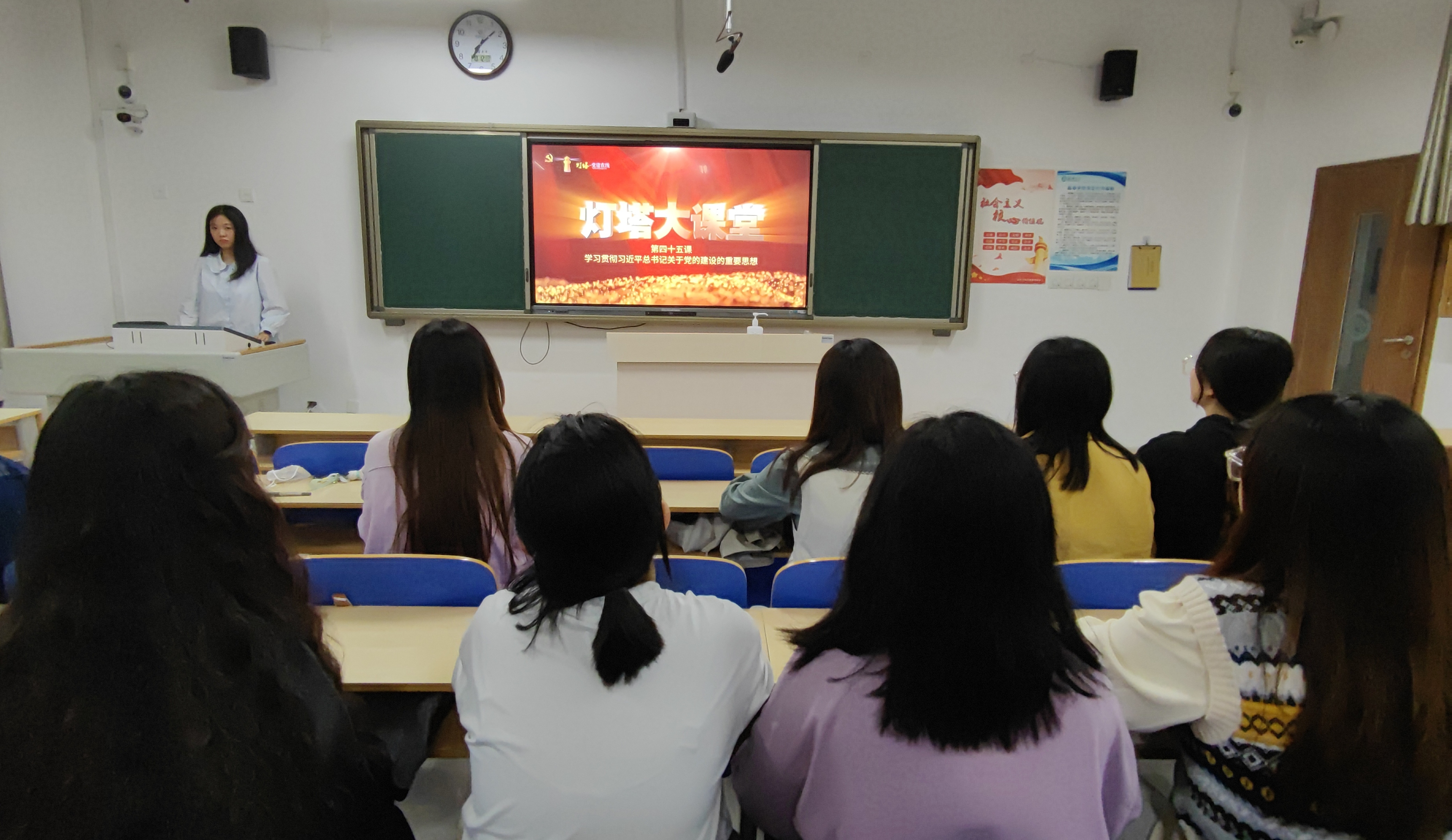 全体学生党员和预备党员参加观看。 活动伊始,党员集中观看《灯塔大课堂》第四十五次课《关于学习贯彻习近平总书记关于党的建设的重要思想》专题讲座。王莉教授从充分认识习近平总书记关于党的建设的重要思想的提出及背景、把握习近平总书记关于党的建设的重要思想的形成过程和学习习近平总书记关于党的建设的重要思想的主要内容三个方面,深入浅出地讲解了习近平总书记关于党的建设的重要思想。随后,各党员进行相关党史学习,积极发挥历史的“教科书”作用,推动党史教育“走心”更“入心”,回望过往的奋斗路,眺望前方的奋进路。活动最后,党员组织交流学习感悟,并表示要充分认识习近平新时代中国特色社会主义思想的内涵,深切感悟习近平总书记和党中央对全国大学生的深情关怀和殷切期望,自觉将其转化为干事创业的强大动力,更加扎实有效地做好各项工作。 本次网络党课的组织学习,不仅有利于学生党员深刻领会习近平总书记关于党的建设的重要论述,而且有利于践行为党育才的初心,引导学生党员树立崇高的政治理念,传承悠久的红色基因,进一步营造浓郁的理论学习氛围。 (供稿:吴璇 摄影:吴璇 初审:吴志钰 复审:祝豪泽 终审:尤姗姗)