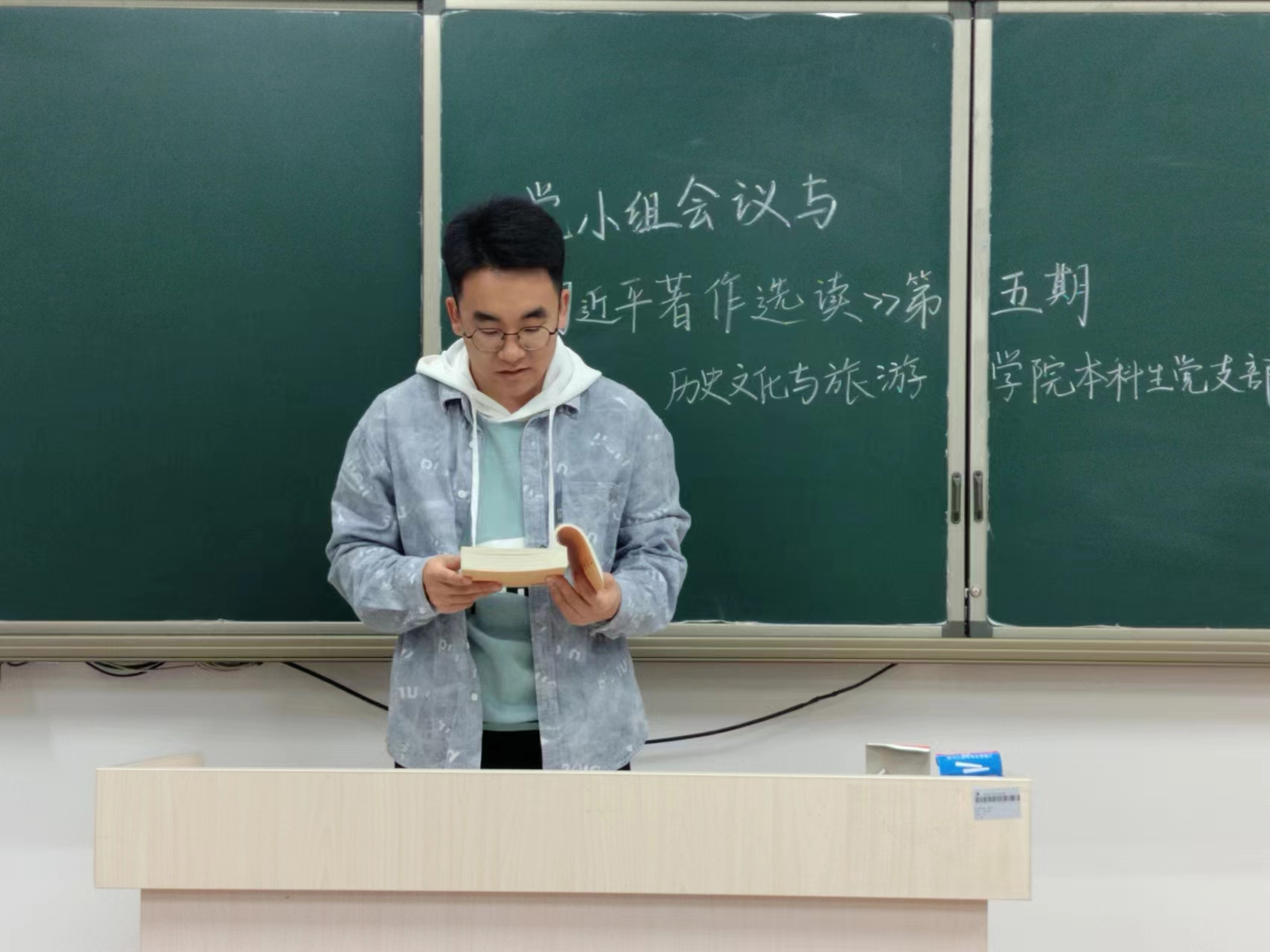 于6#A304进行《习近平著作选读》的主题学习。全体学生党员和预备党员参加。 学习会介绍《习近平著作选读》的基本内容以及学习《习近平著作选读》的重要意义。《习近平著作选读》生动记录了以习近平同志为核心的党中央团结带领全党全国各族人民进行伟大斗争、建设伟大工程、推进伟大事业、实现伟大梦想,推动党和国家事业取得历史性胜利、发生历史性变革,开创中国特色社会主义新时代的历史进程,集中反映了中国共产党推进马克思主义中国化时代化取得的重大理论创新成果。 活动伊始,党员同志以小组为单位开展面对面的谈心谈话,分享最近的学习心得。通过摸清党员的学习情况、生活状况,把牢党员的思想动态。随后,各小组成员分享研读心得。明达一组党员代表品读习近平总书记关于打好精准脱贫攻坚战的重要论述,分享本组心得。作为青年党员应结合自身专业知识与技能,积极参与扶贫工作的监督和反馈,为贫困地区提供技术支持和培训,帮助贫困群众掌握一技之长。明晖二组党员代表就习近平2018年发表的加强生态文明建设必须坚持的原则的讲话,分享本组心得。会议中提到要坚持节约优先、保护优先、自然恢复为主的方针,党员要大力提倡绿色消费理念,践行绿色出行方式,投身于生态文明建设之中。明辨三组党员代表结合习近平总书记有关高质量发展的重要论述,分享本组心得。文中指出我国正处于转变发展方式的关键阶段,青年党员要自觉担起责任,积极投身科技创新领域、参与政策建言,促进政策的科学制定和落实。明懿四组党员代表针对实现中华民族伟大复兴、推进祖国和平统一这一论题,分享本组心得。党员同志纷纷认为应加强各地区、各民族、各阶层青年之间的联系与沟通,增进共同体意识,共同为祖国统一的实现而努力。明哲五组党员代表分享习近平同志在中央经济工作会议上的部分讲话。青年党员应积极支持和参与乡村振兴工作,促进农村经济发展,改善农村居民生活条件,实现城乡发展的协调和平衡。 本次专题学习会的开展,不仅有利于学生党员深刻领会习近平新时代中国特色社会主义思想,提升本科生党支部的思想建设水平,也对学院做好新时代青年工作,推动学院党建工作完善具有重要意义。 (供稿:李敏 摄影:李敏 初审:吴璇 复审:李友怡 终审:尤姗姗)