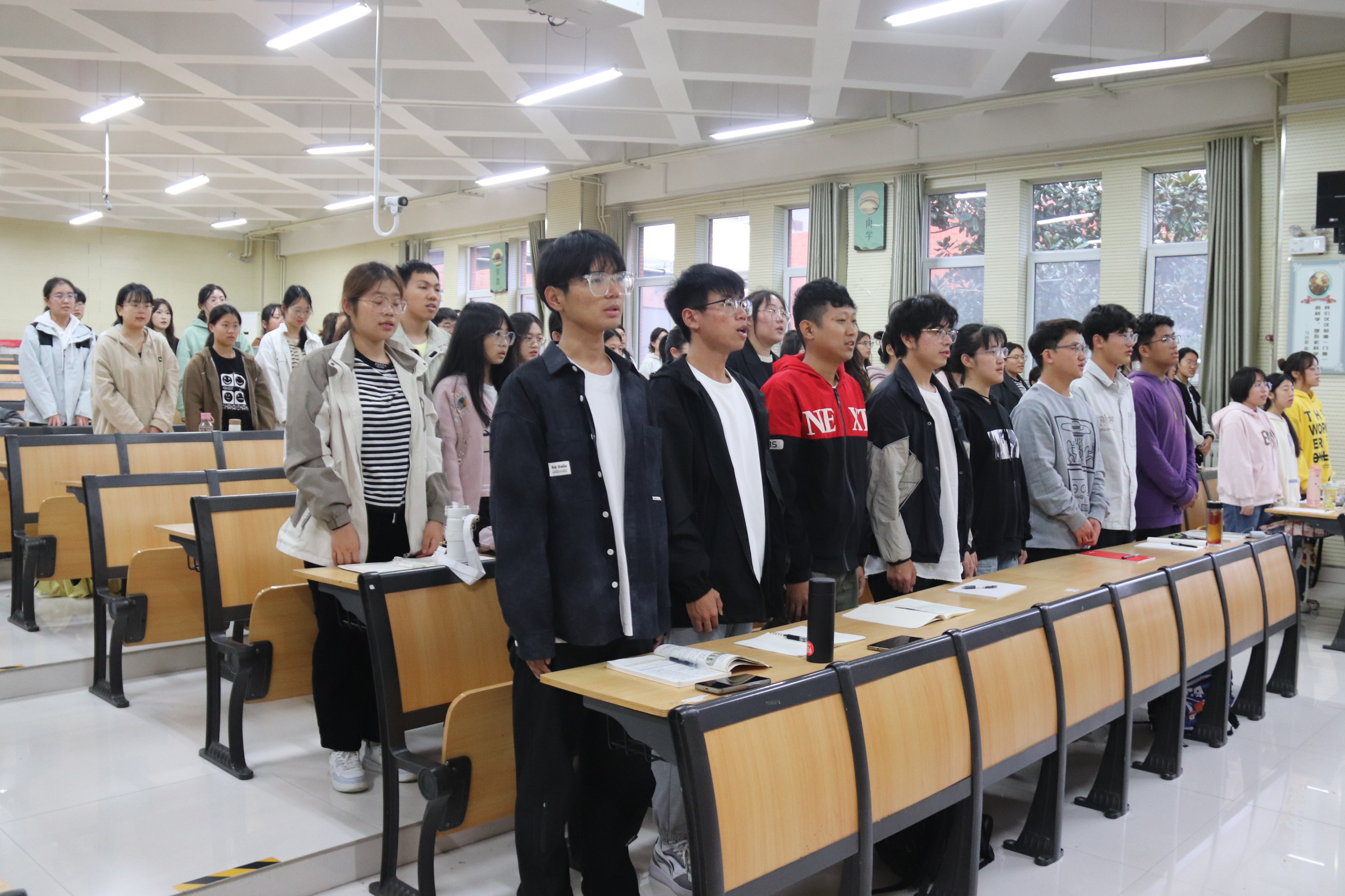 于6#106报告厅举办2024年下半年入党积极分子培训班开班仪式。学院党委副书记、副院长卢庆洪,党委组织员吕超凡、本科生党支部书记石晓晗及2024年下半年入党积极分子参加开班仪式。 开班仪式在庄严的国歌声中拉开帷幕。 石晓晗宣读《入党积极分子培训班的要求及考核办法》,强调各位入党积极分子要遵守培训管理规定,以严谨踏实的态度和求真务实的精神投入到培训中去,争取做到学有所思、思有所悟、悟有所行。 卢庆洪在讲话中表示,全体入党积极分子要强化理论学习,不断深化思想认识;要提高政治站位,加强党性修养和党性锻炼;要遵守学习纪律,确保学习实效。 开班仪式结束后,随即进行入党积极分子培训班第一课。卢庆洪为全体入党积极分子讲授“强化思想淬炼,筑牢信仰之基”主题党课。他以“开天辟地、改天换地、翻天覆地、惊天动地”四个发展阶段为基本线索,带领全体入党积极分子重温中国共产党波澜壮阔的百年发展历程。 入党积极分子观看大型纪录片《中国脊梁》。该片选取近代以来为中华民族的崛起作出历史性贡献的革命先驱、英雄模范、功勋人物和时代楷模,通过故事化的讲述和全新的视角,展现他们作为中国脊梁的使命担当与理想信念,帮助入党积极分子明白是无数的“中国脊梁”奋力振兴中华,交出无愧于党和人民的时代答卷。 筑牢信仰之“基”,补足精神之“钙”,夯实行动之“源”。本次开班仪式的顺利举办,有助于引导入党积极分子端正入党动机,找准时代定位,争取早日成为一名合格的共产党员。下一步,学院将以此次开班仪式为契机,进一步提高入党积极分子的综合素质,培养更多优秀的后备力量,为实现中华民族伟大复兴的中国梦增添一份力量。 (供稿:宋佳珊 摄影:宋佳珊 初审:李月 复审:张程程 终审:石晓晗 尤姗姗)