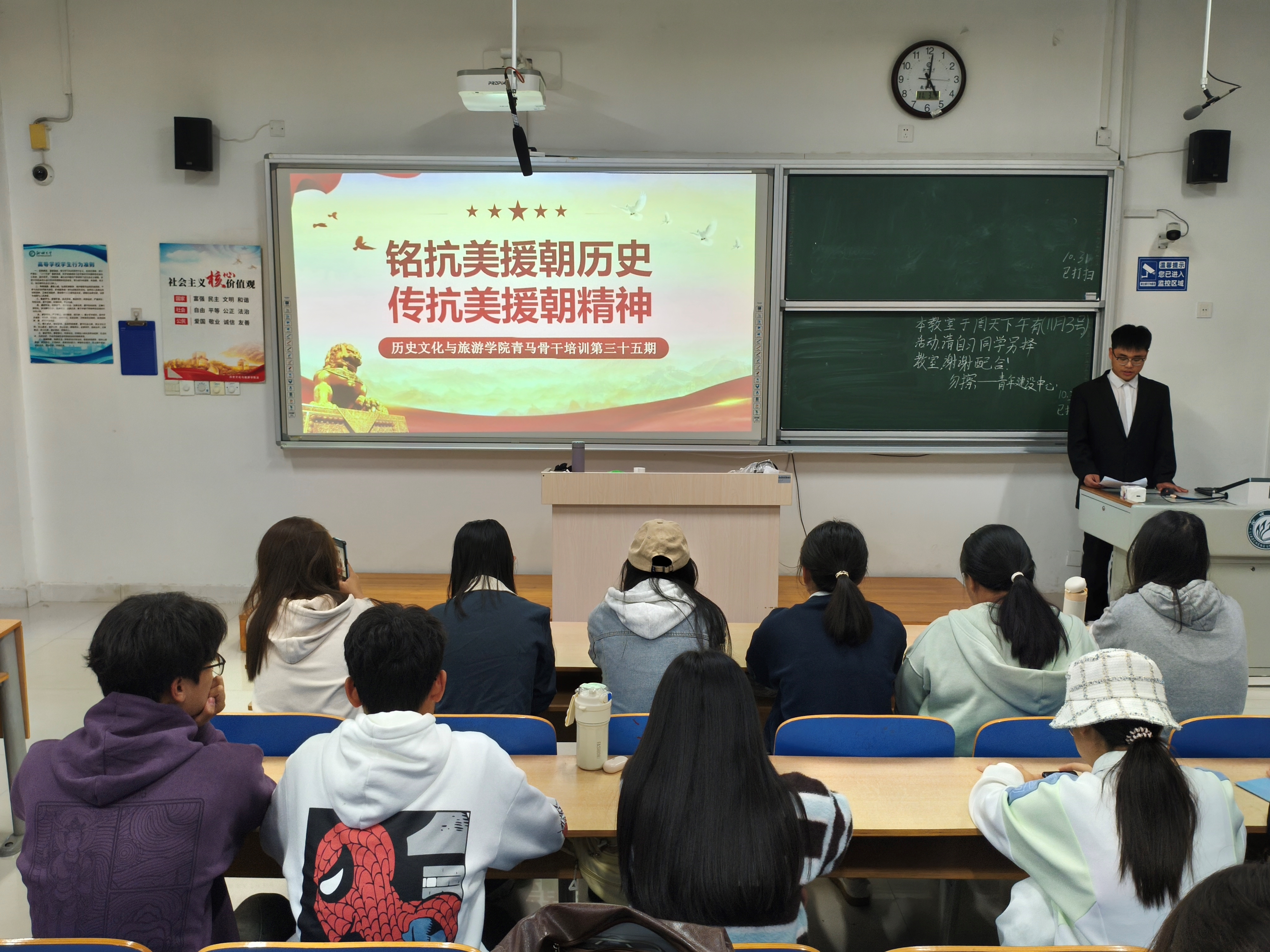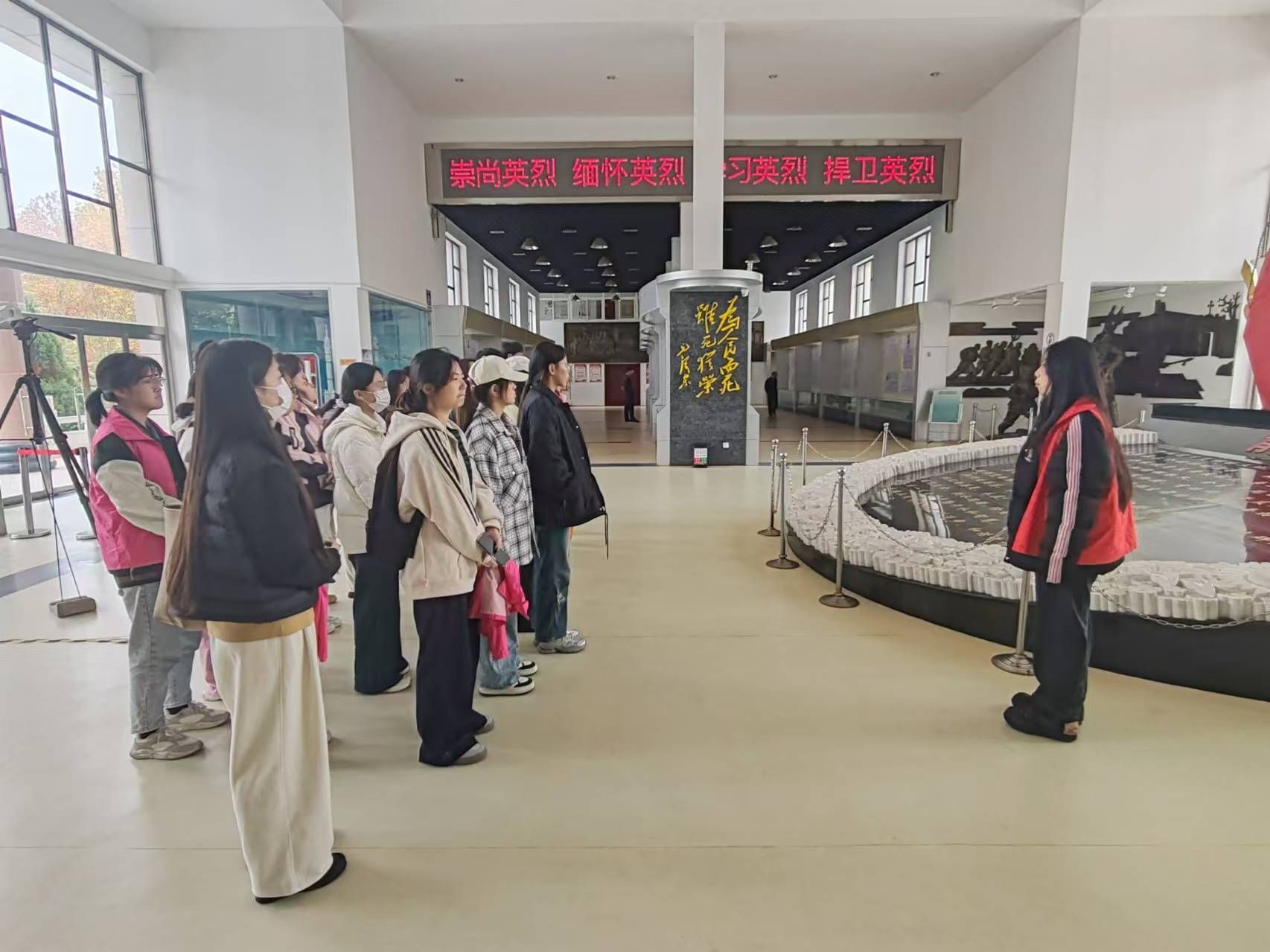 于6#A502教室举办“铭抗美援朝历史,传抗美援朝精神”第一期青马工程培训会。 主讲人从抗美援朝的背景、过程、重大意义三部分进行详细介绍,强调抗美援朝战争对巩固新中国政权、保障新中国持续发展的深刻影响,向同学们简要阐述抗美援朝战争的出兵原因、作战策略。主讲人播放抗美援朝纪录片,重现战争情景,向同学们呈现出志愿军战士顽强的战斗意志和崇高的爱国主义精神。 本次会议的顺利召开,有利于为青年学生树立榜样模范,使其增强使命感、责任感,发扬爱国卫国、敢于斗争的精神。 走进红色基地 追寻先辈足迹 为缅怀革命先烈,加深同学们对革命先烈英勇事迹的认识,11月9日,小妲己直播