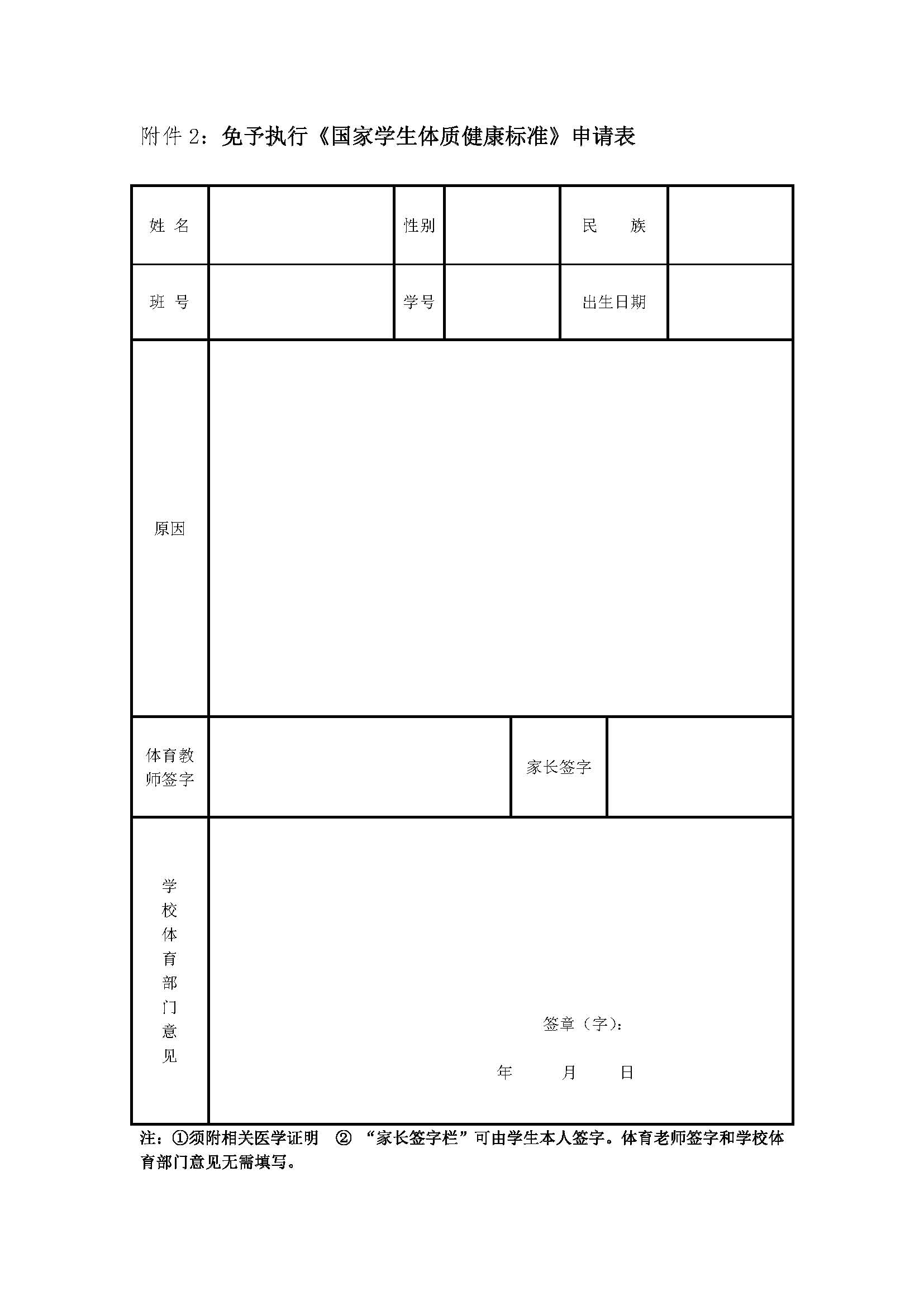 附件2:《免予执行国家学生体制健康标准》申请表.doc