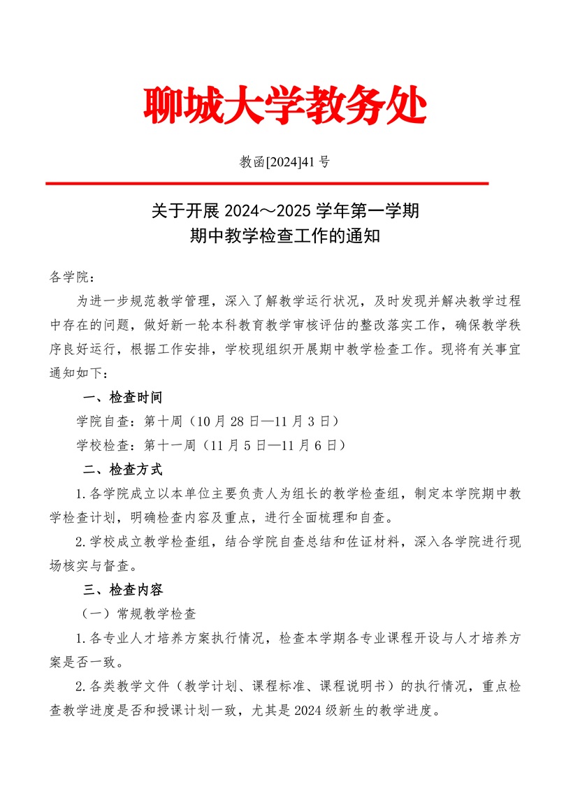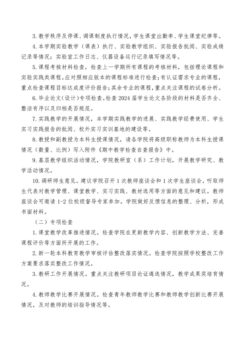 关于开展2024-2025学年第一学期期中教学检查工作的通知