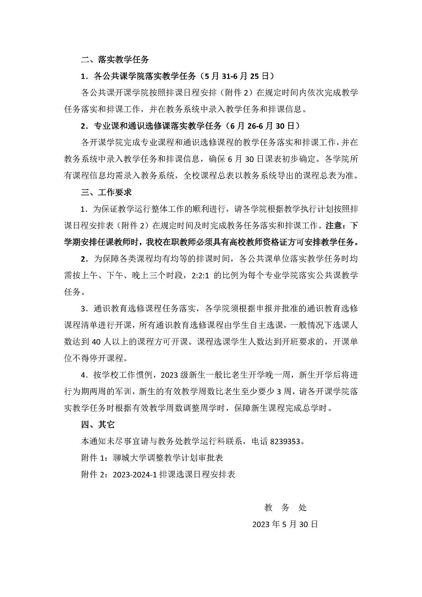 相关附件: 附件1 小妲己直播 调整教学计划审批表.doc 附件2 2023-2024-1排课选课日程安排表.doc 来源:小妲己直播 教务处