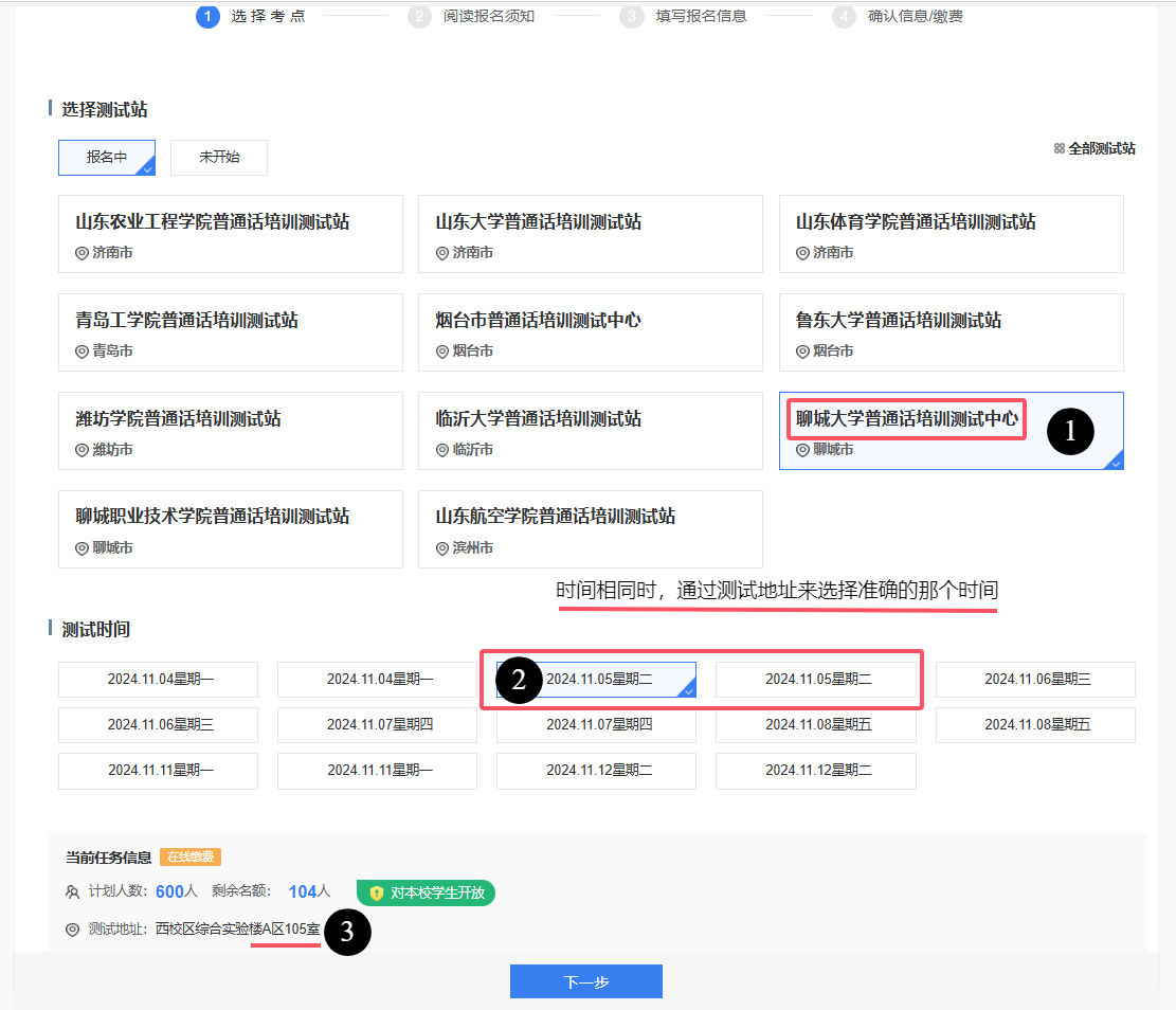 ”,“院系”请填写“本学院全称”,“从事职业”请选择:在校学生--->本科生或研究生--->师范类或非师范类(一定要选择在校学生,否则按社会人员收费)。 5. 报名时根据测试时间及测试地址选择相应的任务进行报名。 6. 根据山东省发展和改革委员会、山东省财政厅《关于明确普通话水平测试收费标准的通知》(鲁发改成本〔2022〕222号)规定,普通话水平测试收费按照在校学生每人次25元的收费标准收取。 四、测试安排 测试地点在西校综合实验楼A区1层A104(候考室为A103)、A105(候考室为A107)机房。考生需听从引导员安排,先在候考室排队进行信息采集,保存好采集员给的批次和机位号,然后听从安排有序到机房测试。考生要服从实验室管理人员和监考人员的管理,爱护设施,保持实验室整洁。测试完成后根据监考人员指令有序离场,离场后不得在走廊逗留、喧哗。 五、其他事项 1.普通话测试需测评员逐个交叉评分,省语委复审,成绩经省语委办审核后公布并办理证书(成绩公布后即可网上查询证书),证书寄到我校后各学院统一领取后发放。 2.上传照片为打印准考证使用,现场采集照片为普通话证书使用,请大家注意着装、听从指挥。 3.本次测试不安排补测。请根据准考证上面的时间提前30分钟到达候考室。 教 务 处 2026年3月13日