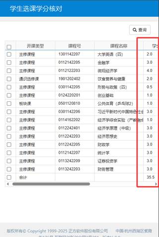学分制选课管理办法(试行)》等文件规定,现将本学期选课学分核对有关事项通知如下: 一、核对对象 全体全日制本科在校生。 二、时间安排 3月18日——23日 三、核对方法 学生通过教务系统在线核对,具体操作步骤如下: 1.登录教务系统; 2.选课菜单——学生选课学分核对; 3.核对查询的选课课程及学分与本人选课及上课课程是否相符,若课程及学分有误,请将有关信息报本学院教务办公室核实后更正。 四、工作要求 1.各学院接学生反馈的信息后要认真核实,核实后如需修改选课信息由学生本人登录教务系统申请退选或补选,学生学院及开课学院审核,或由学生学院教学秘书在教务系统修改更正;此次学分核对结束后教务处统计本学期学生选课学分数转学校财务处。 2.本次选课学分核对结束后,学生因学籍异动或个人原因需调整选课数据的,由学生本人登录教务系统申请退选或补选,学生学院及开课学院审核,或由学生学院教学秘书在教务系统修改更正。本次核对后选课学分又变动的,下学期统计转财务处处理。 3.本次核对后统计的选课学分数将作为学校对学生收取选课学分费的依据,请各学院和全体同学务必认真做好选课学分核对工作。 教务处 2026年3月18日