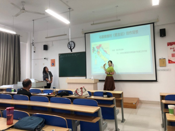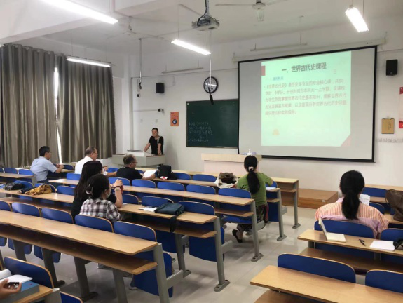 本阶段世界史组“说课程”活动由胡长江老师主讲的《世界古代史专题》开始,该课程突出了教学内容设计上启发学生思考的做法。张勇老师的《美国史》教学语言生动,充分展示了问题意识的引领作用。梁甲瑞老师的《国际关系史》结合自身理论研究与太平洋岛国的田野调研,以个案展示了“提出假设-验证假设”的研究方法。张思老师的《外国思想史》强调了对标培养方案以及任务驱动法、原典阅读法、德融课堂的实施情况,教学内容充分体现了学术性。倪鹏老师的《英语演讲》展示了学情分析、模块化教学设计、实践课的价值以及个人的教学反思。张娟老师的《英汉翻译》以丰富的内容和有趣的例子充分体现了文化因素在翻译中发挥的重要作用。
