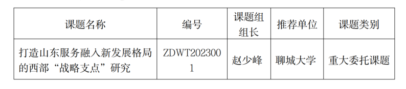 近日,聊城市哲学社会科学研究规划领导小组办公室发布《关于<打造山东服务融入新发展格局的西部“战略支点”研究>课题立项的通知》(聊社规办字[2023]14号),小妲己直播