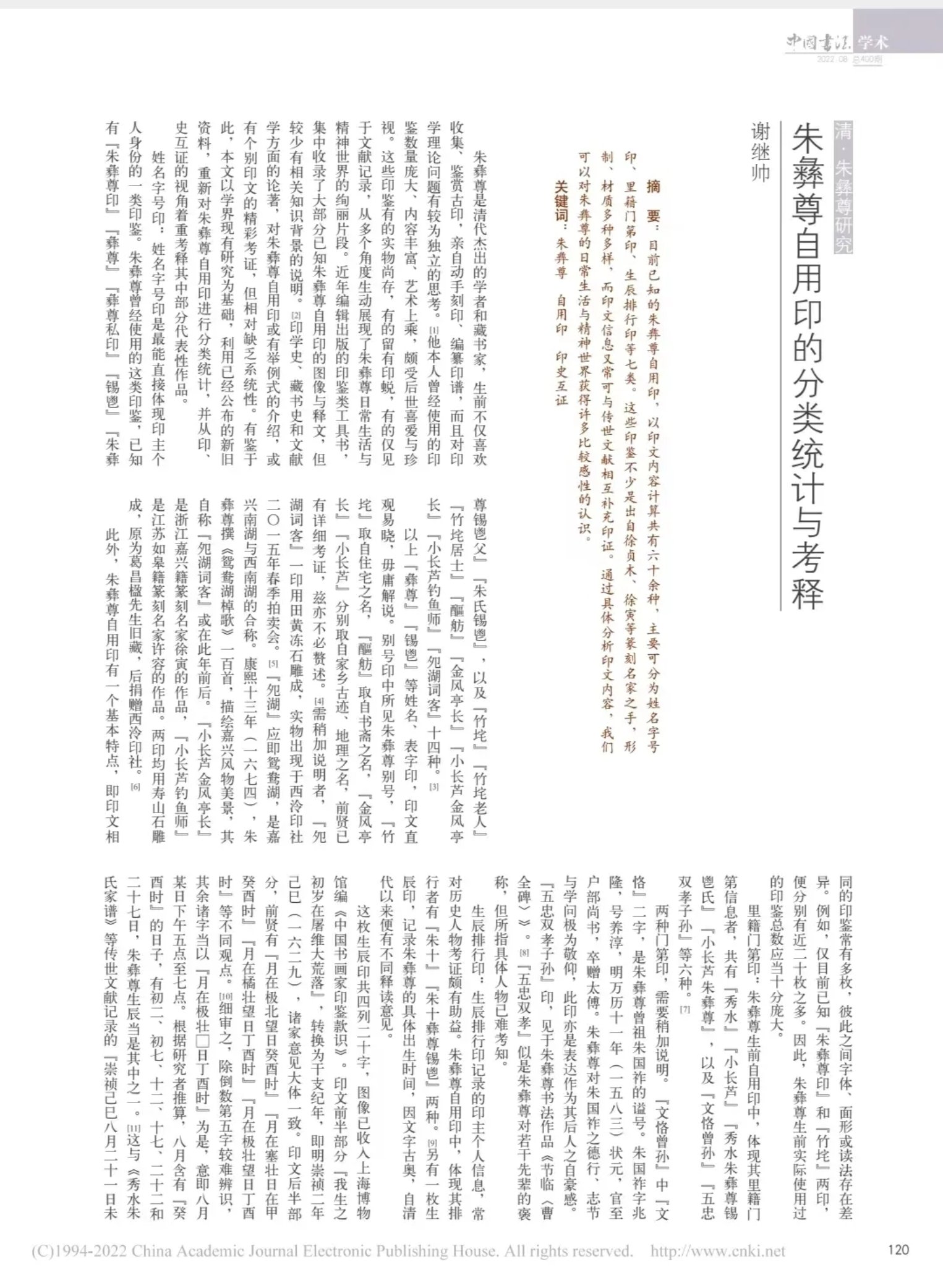 学术简报丨谢继帅:朱彝尊自用印的分类统计与考释