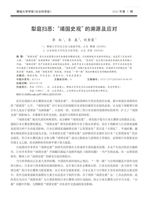 学术简报丨李红、齐泉、刘秀荣:犁庭扫恶:“靖国史观”的溯源及应对