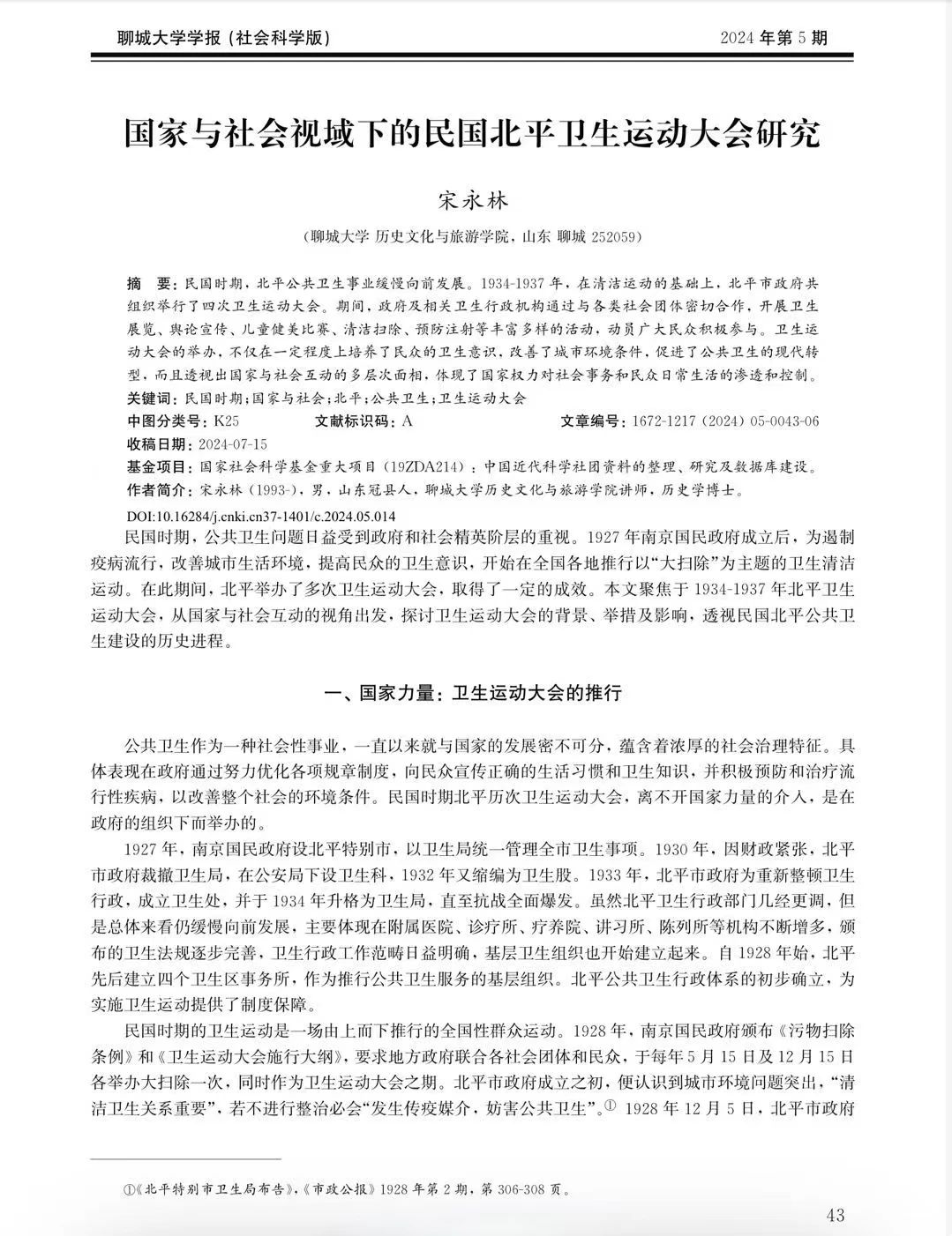 学术简报丨《国家与社会视域下的民国北平卫生运动大会研究》