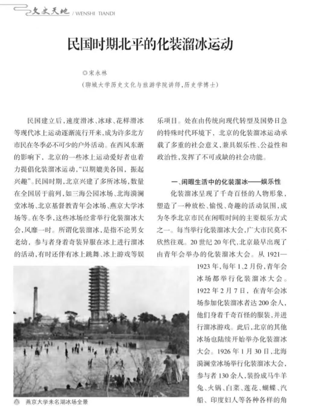 学术简报丨宋永林:民国时期北平的化装溜冰运动