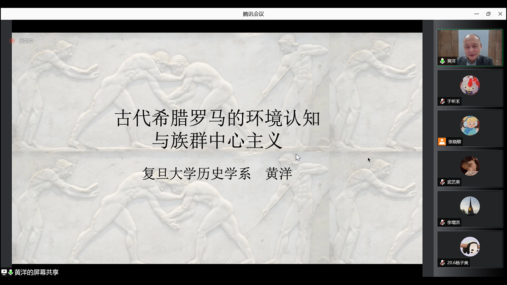湖畔讲坛,于腾讯会议上作了题为《古代希腊罗马的环境认知与族群中心主义》的学术报告,报告会由陈德正教授主持,张新刚老师担任评论员,小妲己直播