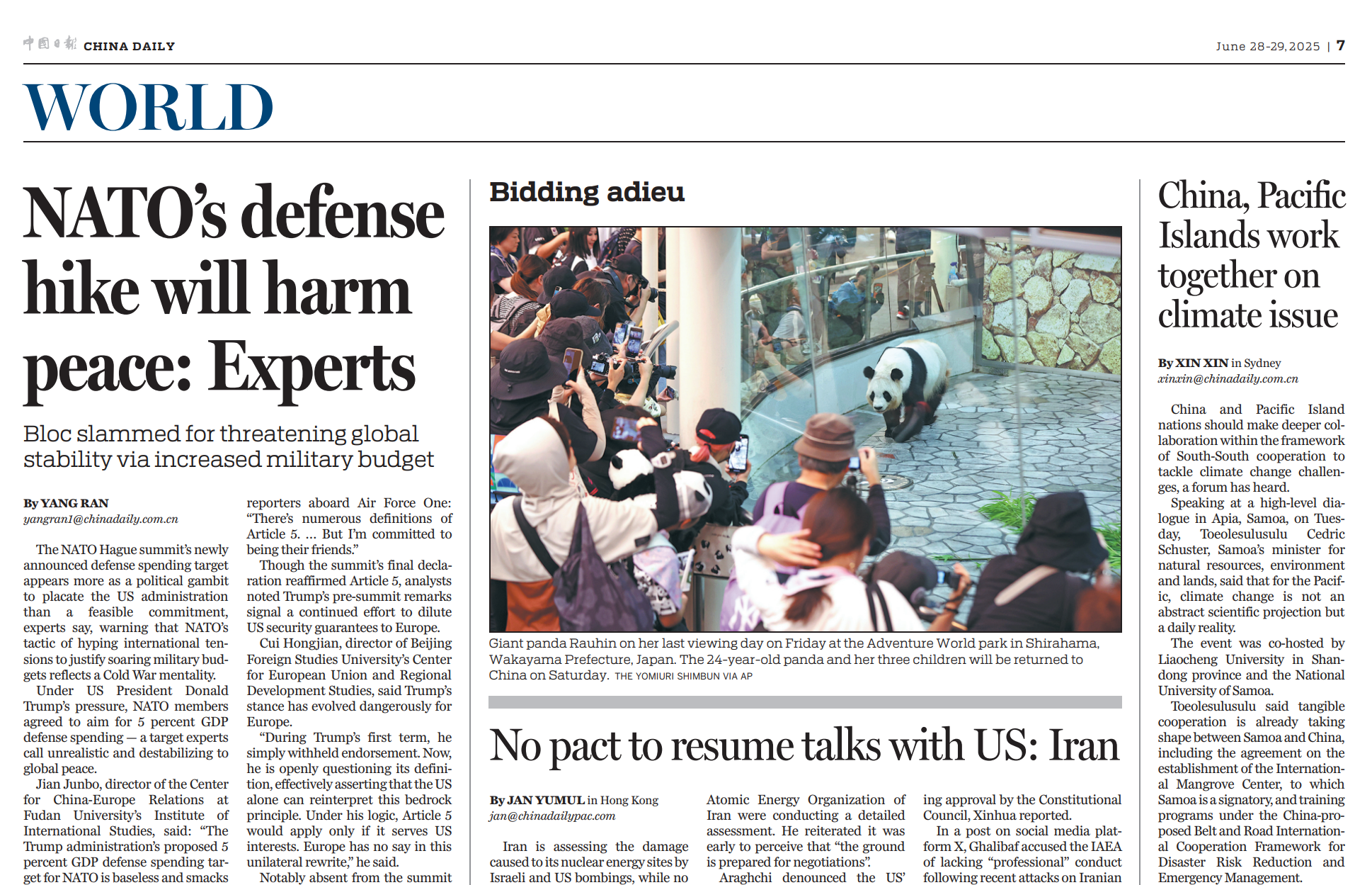 - 《中国日报》头版报道我校太平洋岛国研究服务外交大局