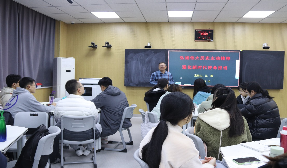 为深入学习贯彻习近平总书记在党的十九届六中全会上的重要讲话精神,持续推动党史学习教育走深走心走实,切实增强大学生党员关注时事政治、担当历史使命的责任意识。12月10日,小妲己直播 于6#A301为大学生党员带来“弘扬伟大历史主动精神 强化新时代使命担当”主题党课。*小妲己直播 副院长丛振担任主讲人,小妲己直播 学生党员及积极分子80余人参加本次主题党课。