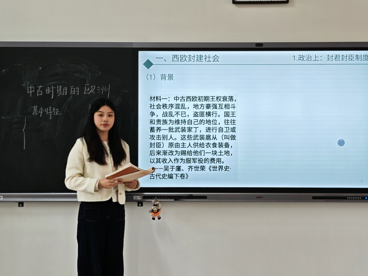 学科教学(历史)专业研二的一名学生,目前在山东聊城第三中学进行为期半年的教育实习。 教育实习期间,我主要参与了高一年级历史学科的教学工作,实习内容主要包括集体备课、听课观摩和课堂教学三个方面。 在集体备课中,我系统掌握了从研读课程标准到教学反思的完整流程。教师们围绕教学重难点展开研讨,无私分享教学经验和创新方法。这段经历让我深刻认识到,历史教学既要保持学术严谨性,又要富有教学创造性,同时也更加坚定了我不断提升专业素养和教学能力的决心。 在听课过程中,我重点学习了高一下学期世界史课程,系统观察了多位教师的教学实践。通过这一过程,我既弥补了世界史专业知识上的不足,又深入领会了不同教师的教学风格与方法特色,为今后的教学工作积累了宝贵经验。 在课堂教学中,我将时间管理与课堂互动视为教学的“双翼”。课前,我科学设计教学环节的时间配比,确保课堂节奏张弛有度;课中,通过创设多样化的互动情境,充分调动学生参与积极性;课后则及时进行教学反思,并在导师指导下持续优化教学设计。通过持续的教学实践与改进,我的教学能力得到显著提升,实现了专业成长的良性发展。 这段充实的实习经历,使我对历史教师的职业内涵有了更深刻的体悟,对教学工作有了更全面的把握。衷心感谢山东聊城第三中学提供的实践平台,以及指导教师的专业引领和无私帮助。未来,我将持续精进专业能力,提升教学水平,为成长为一名优秀的历史教师而不懈努力。