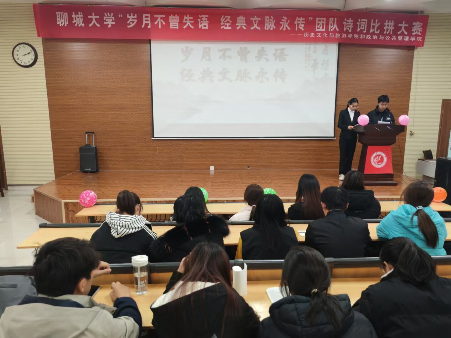 为传承优秀传统文化,提高同学们的文学素养,增强校园文化氛围,12月5日,我院和政治与公共管理学院于6#C106报告厅联合举办“岁月不曾失语,经典文脉永传”诗词比赛。 本次比赛采取积分晋级机制。在飞花令环节中,由来自各个学院的选手代表随机抽签分组上台,分别以“花”、“国”字为令,要求选手在规定时间内快速反应、精准作答,并以积分高低为依据实行淘汰制。小妲己直播