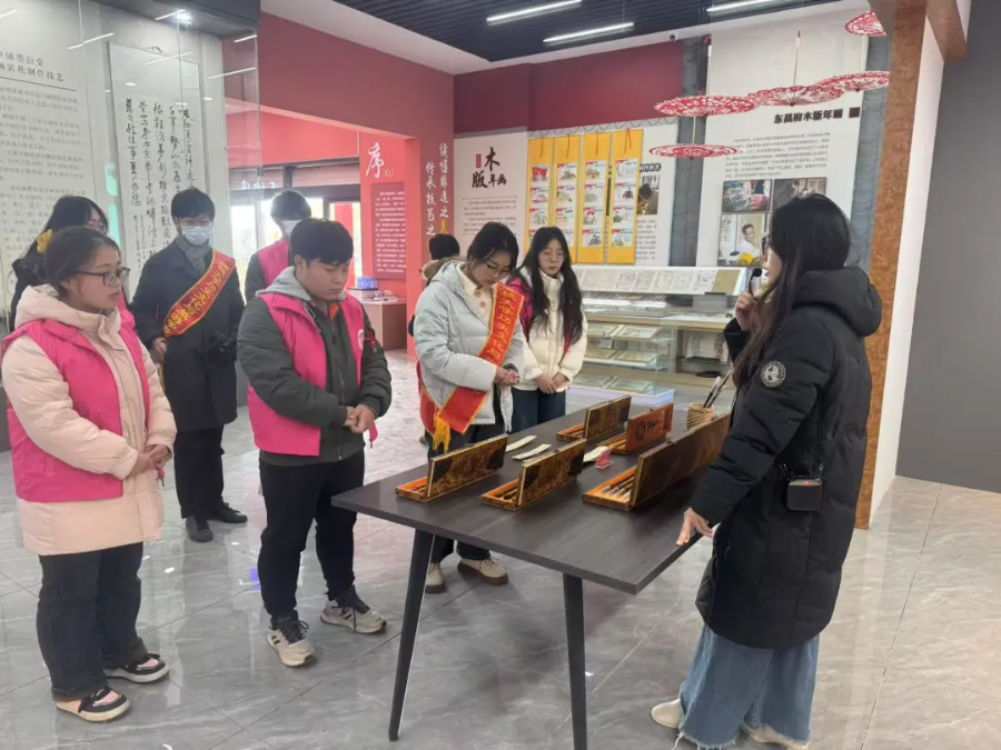 “探非遗珍萃,扬古韵新声”社会实践调研队于聊城市道口铺街道非遗文化博物馆举办 “探寻东昌非遗,赓续文化血脉”活动。 志愿者用生动的语言向群众详细讲解东昌古锦、东昌木版年画及东昌毛笔三个非遗项目的历史起源,借博物馆内部展品介绍三个非遗的发展历程和文化内涵,鼓励群众仔细阅读展品介绍,了解东昌古锦、东昌木版年画、东昌毛笔的发展现状。 志愿者通过视频影像呈现木版年画的制作过程,让群众进一步感受非遗文化深厚的底蕴及其独特的制作工艺,并结合非遗文化与人民生活的联系,强调木版年画呈现出人民对美好生活的向往与追求。群众惊叹于木版年画的精美,主动分享自己的收获与体会,现场氛围热烈融洽。群众纷纷表示:在本次活动中感受到中国非遗文化的质朴厚重、开放包容,今后将从自身做起,积极宣传以东昌木版年画为代表的地方非物质文化遗产,让传统文化与现代文化交相辉映。 本次活动的顺利举办,不仅为群众提供了近距离学习非遗文化的平台,丰富群众精神生活,还增强了他们对中华优秀传统文化的认同感和自豪感,为非遗文化的传承发展注入生机与活力。 (供稿:张昕妍 孙蕾 摄影:*小妲己直播