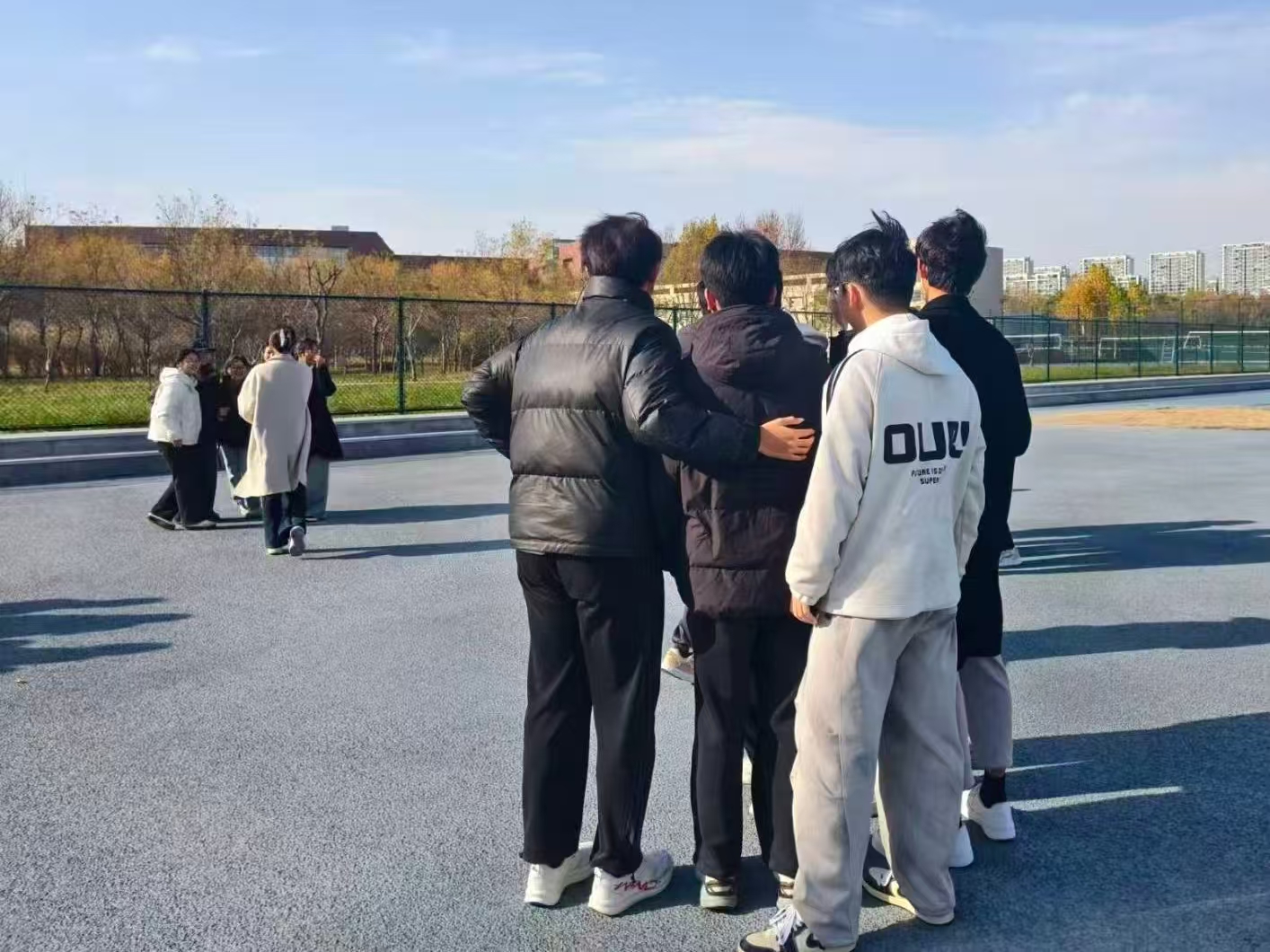 于东校区田径场举办“压力松绑,心力续航”心理团体辅导活动。 主持人以趣味数字为指令,带领同学们开展“喊数抱团”游戏。随着指令下达,同学们迅速反应、灵活判断,快速寻找同伴完成抱团,既考验他们的反应与临场判断能力,也有利于在轻松互动中打破陌生感,现场欢声笑语不断。主持人引导同学们进行“解手环”游戏,同学们需要在手牵手围成圆圈后,通过交叉移动形成复杂“锁链”,且需遵守全程不松手的规则。面对缠绕的手环,同学们通过分工观察、有效沟通、反复调整站位与姿势,在彼此配合、互帮互助中,游戏进程被不断推进。当最后一组解开“结”、还原成完整圆圈时,现场气氛高涨。 在“你画我猜”的趣味互动环节,主持人向首位同学展示题目后,作画者用夸张生动的肢体动作,搭配简洁形象的现场涂鸦传递信息,后续猜题同学积极展开联想,默契配合,喊出猜测的答案。同学们在趣味互动中尽情释放日常学业与生活压力,进一步拉近彼此的心灵距离。 本次活动以游戏为载体,以心灵为纽带,帮助同学们有效缓解心理压力,强化他们的团队协作意识与集体凝聚力,为同学们的个人身心健康成长筑牢心理根基,更为校园心理健康生态注入鲜活而持久的活力。 (供稿:朱欣艺 刘雪怡 王梦 初审:王梦 复审:宋佳珊 终审:尤姗姗)
