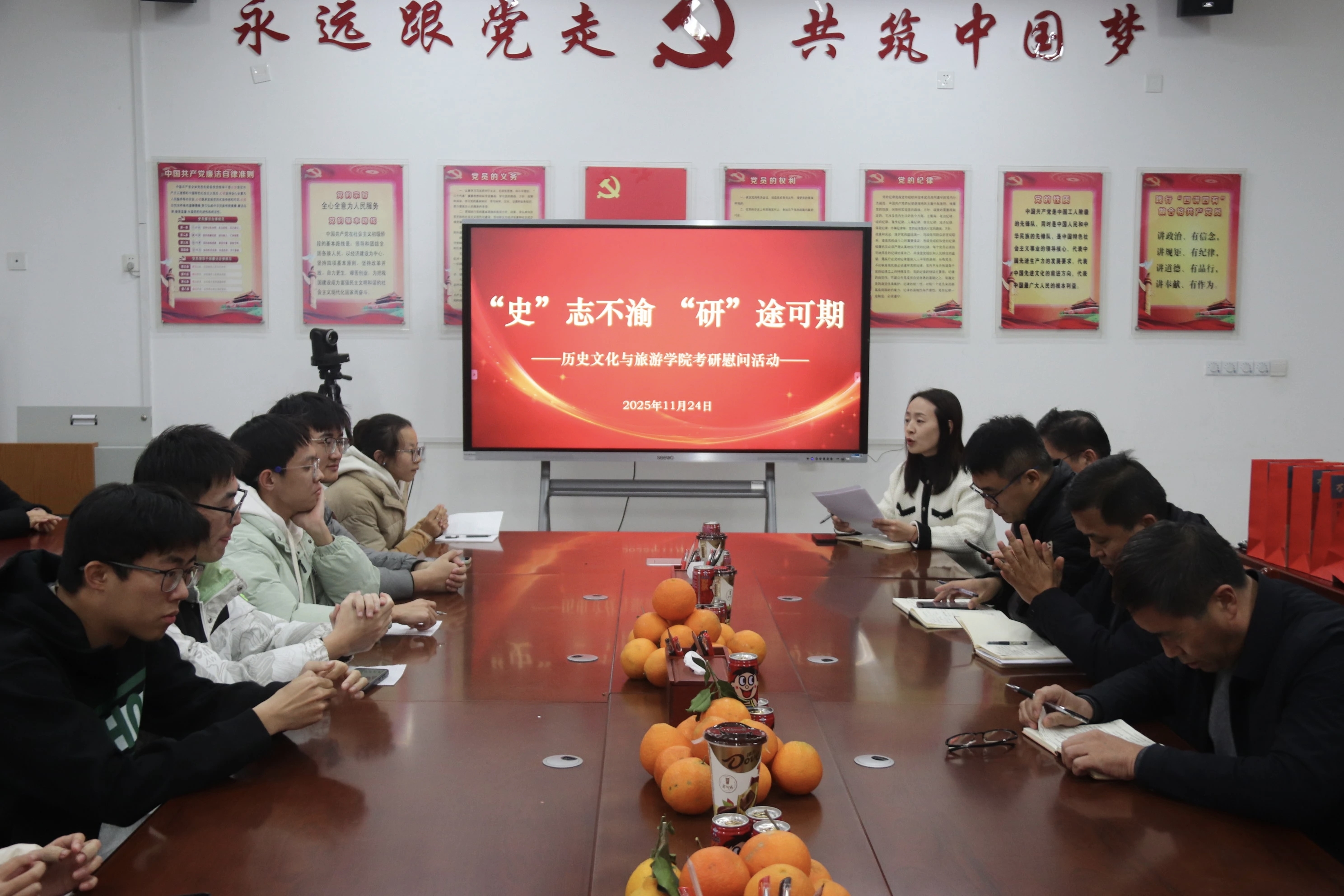 于6#A104会议室举办“‘史’志不渝,‘研’途可期”考研慰问活动。学院党委副书记、副院长卢庆洪,副院长官士刚,教师代表,辅导员及班主任出席本次活动。本次活动由石晓晗主持。 卢庆洪叮嘱同学们既要秉持平和心态,始终保持对知识的赤诚与钻研热忱,又要注重科学备考方法的运用,着力提升复习效能,稳步扎实走好考研冲刺阶段的最后“一公里”。官士刚提醒同学们合理调配学习与休息时间,及时疏导备考过程中产生的负面情绪,以昂扬向上的状态投入复习。老师们逐一传授提分技巧,鼓励大家秉持‘稳’字当头的备考心态,遇到难题主动沟通交流,始终坚守初心、坚持到底。 礼包分发环节,老师们为在场同学逐一发放用心甄选的考研礼包。礼包内的每件物品都承载着老师们的美好祝愿,巧克力寓意“巧”克难题,愿同学们在考场上从容破解各种挑战;橙子象征“心想事成”和“好事成双”,寄托双倍祝福;实用文具陪伴着同学们笔耕不辍,书写佳绩;旺仔牛奶蕴含“运气旺,斗志旺”的吉祥寓意,为冲刺阶段注入满满活力。同学们纷纷表示学院的关怀让他们倍感温暖,一定会全力以赴,以饱满的精神状态迎接即将到来的考试。 本次活动的顺利举办,不仅有利于为学生疏解压力,助力其高效备考,更有利于搭建师生沟通桥梁,彰显学院育人责任,营造团结互助、积极向上的学习氛围。 (供稿:高越 井鲁豫 摄影:高越 初审:井鲁豫 罗佩华 复审:宋佳珊 终审:尤姗姗)
