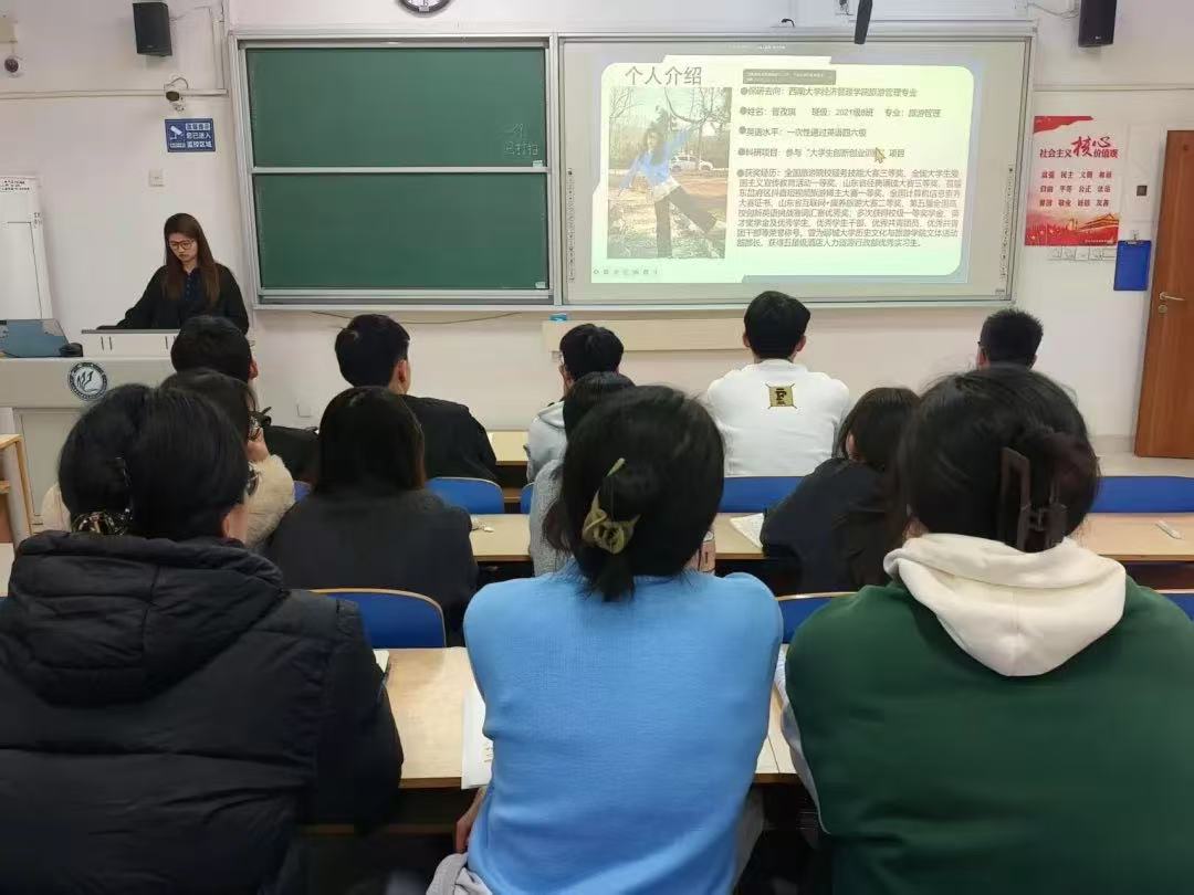 团委书记石晓晗向同学们介绍了西部计划的详细内容,鼓励同学们积极参与,到西部实现自己的人生价值。 本次活动的顺利举办,不仅有利于为同学们提供宝贵的保研经验和保研路径,有效地解决了他们的困惑,显著提高他们的自信心,还有利于帮助同学们更加明确保研具体流程,使他们掌握更多的技巧与方法。 (供稿:王恒宇 郭俊霞 摄影:郭俊霞 初审:于舒然 复审:张程程 终审:尤姗姗)