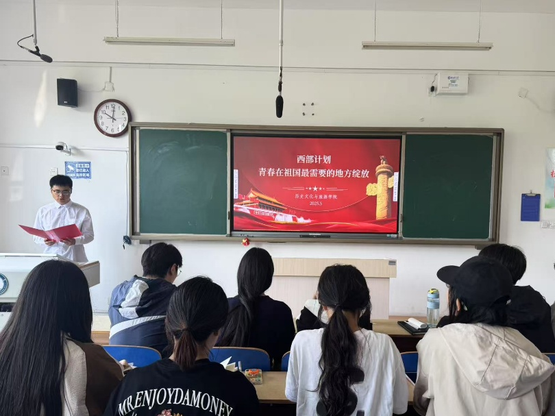 于6#A302教室举办“到西部去,让青春在祖国大地闪光”西部计划宣讲会。 主讲人播放西部计划主题宣传片,视频中展现西部壮美风光、基层服务场景以及往届志愿者的奋斗身影,使同学们对西部计划有初步了解和认识。主讲人从项目的起源、发展历程,到涵盖的教育、乡村振兴等多个服务领域进行详细阐释,向同学们深入解读西部计划的内涵。主讲人展示详实的数据和丰富的案例,帮助同学们清晰地了解西部计划在推动西部地区发展中所发挥的重要作用,以及为志愿者个人成长带来的机遇。与此同时,主讲人邀请现场同学提出对西部计划的不解问题并及时进行解答,为同学们提供个性化指导。活动最后,主讲人呼吁同学们积极投身于西部计划中,为祖国的发展贡献属于自己的一份青春力量。 本次宣讲会的顺利举办,不仅有利于帮助同学们深入了解西部计划,激发同学们参与西部计划的热情,鼓励同学们将个人理想融入国家发展大局,在实践中增长才干、实现价值,更有利于为同学们搭建成长平台,强化社会责任与担当,带动更多同学关注社会需求,助力我国西部地区事业的发展。 (供稿:黄博雨 摄影:*小妲己直播