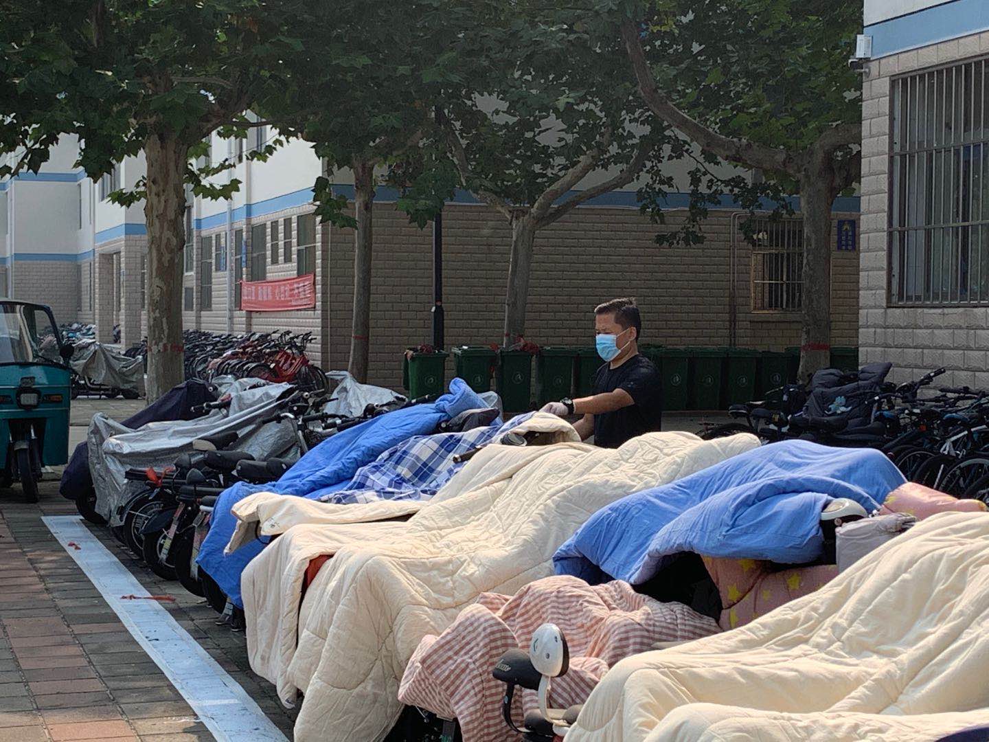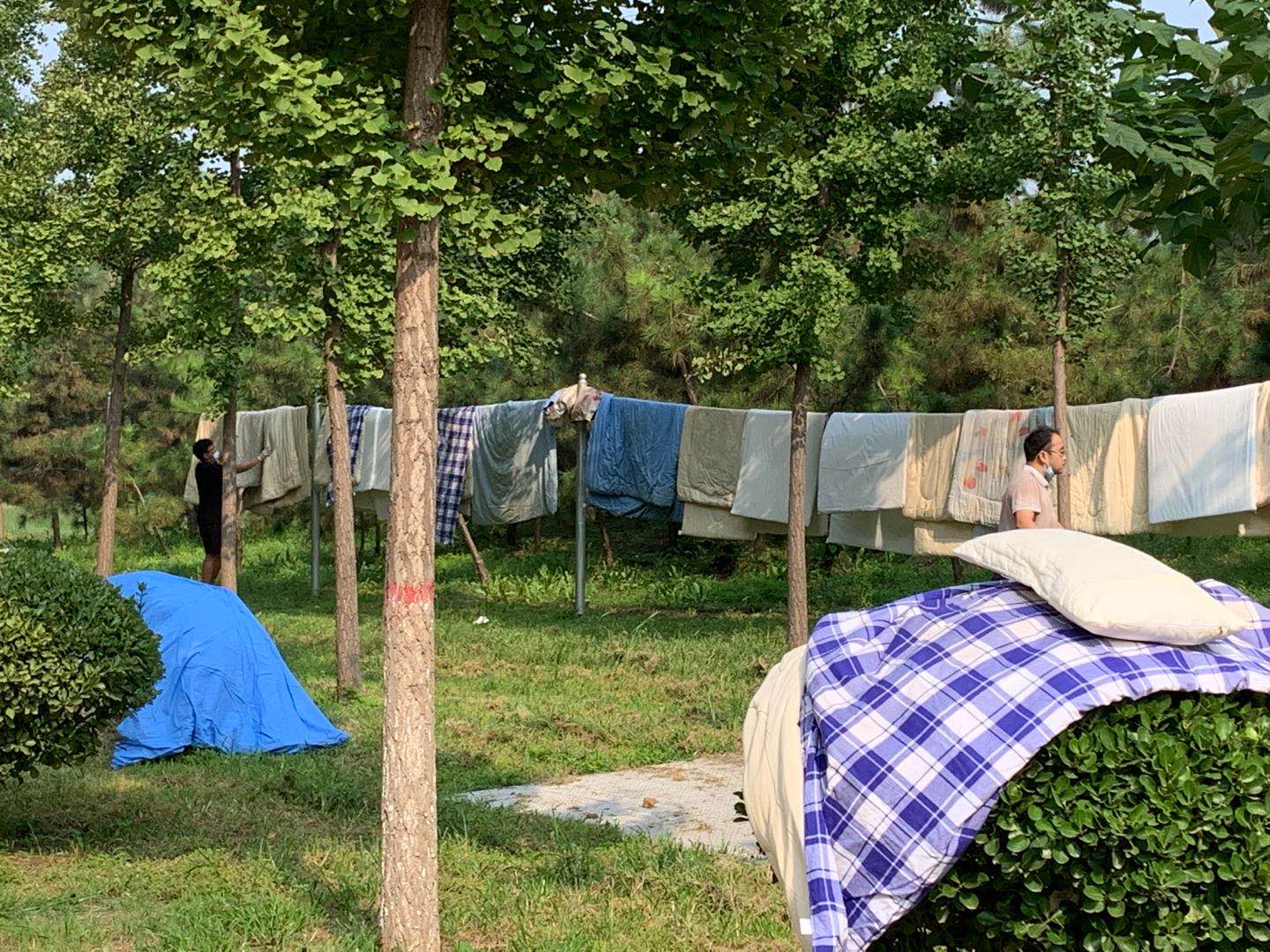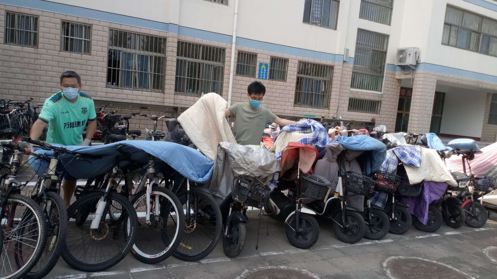 的教职工们集合在群星公寓13、14号楼下,准备集中对学生宿舍进行通风、消杀和除湿工作,为学生即将到来的集体生活做好充分的卫生保障工作。 受疫情影响,同学们已大半年没有回到宿舍,宿舍的被褥久未得到晾晒和清洗,想必同学们最担心的事情就是被褥受潮。本着一切以学生为中心的思想,老师们把受潮的被褥做好标记,一床床进行晾晒。晒被子是个大工程,从九点左右晾出,到下午五点收回,尽可能给大家恢复原样,每个老师都是一头汗水、一身灰尘。 除此之外,老师们还有序展开各项“战斗”:首先打开门窗,通风对流,给宿舍换换气;个别同学在离校前没有倾倒垃圾、桌子上有一些发霉的果核、干瘪的橘子、长毛的零食,统统清理掉;最后对地面和角落进行消杀。经过一整天的通风,宿舍原本潮湿的味道也散了大半。整洁与卫生的宿舍中藏着老师们满满的关爱。 看到老师在炎热的暑天认真地为宿舍打扫卫生、晾晒床褥、被子,学生们表示十分感动,写下来自心底对老师最真诚的感谢与敬意。 感想一: 睡梦中最幸福的事情就是亲吻阳光。开学在即,学院老师特地在学生公寓楼下为即将返校的我们集中晾晒被子。享受阳光与温暖,为我们返校平添一丝温馨。阳光甚好,让我们“被”感温暖,给我们带来了感动,老师辛苦了!期待我们的相遇! ——李雪 2019级6班 感想二: 2020年的时间已过去大半,由于疫情的原因,我们延迟开学到现在,在家中不免会担心寝室卫生和自己的被褥情况。临近开学,我们*小妲己直播