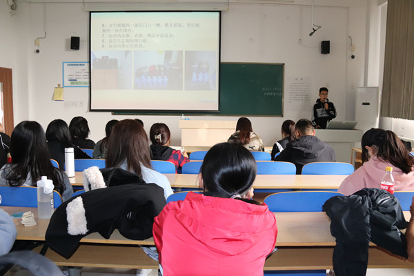于政史楼A502教室举办舍长大会,宿管中心主任谢继光担任主讲人,19级、20级舍长参加本次会议。 会议伊始,谢继光以PPT的形式向舍长们详细地介绍宿舍检查的标准以及物品摆放的注意事项。鉴于各高校每年均有宿舍安全事故的发生,谢继光着重强调了宿舍内的用电安全问题。谢继光借助具体案例,深入分析使用违规电器、乱接电线等违规行为可能带来的严重后果,警醒舍长们要对宿舍内的电器使用进行检查,保证同学们在宿舍内安全用电。随后,谢继光通过检查过程中拍摄的宿舍物品摆放的照片,细致地分析宿舍内物品摆放存在的问题以及学院对于宿舍物品摆放的要求和违规行为的处理方法。会议最后,谢继光对舍长们提出的问题一一回答,呼吁舍长提高宿舍安全意识和责任意识,领导舍员们做好宿舍工作,大会圆满结束。 本次会议的成功举办,不仅有利于使舍长们充分了解宿舍的检查标准,加深舍长们对自身责任的认识和理解,而且有利于营造文明、健康、和谐的宿舍氛围,推动文明宿舍的建设,为营造良好的学风奠定了坚实的基础。(撰稿人 韩彩云 王美琪)