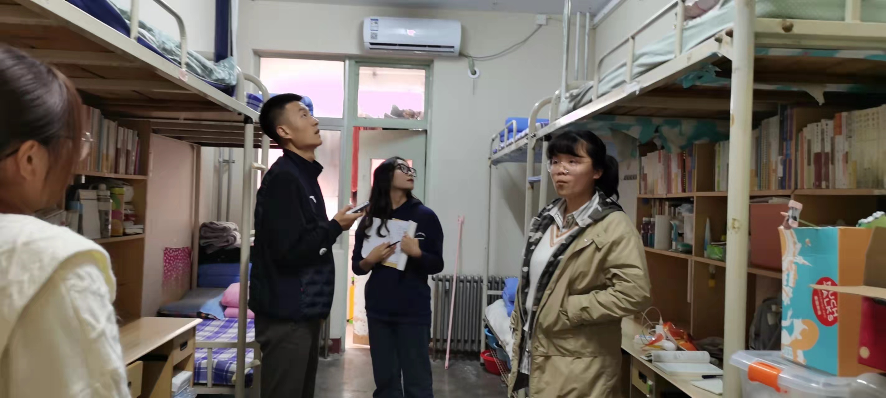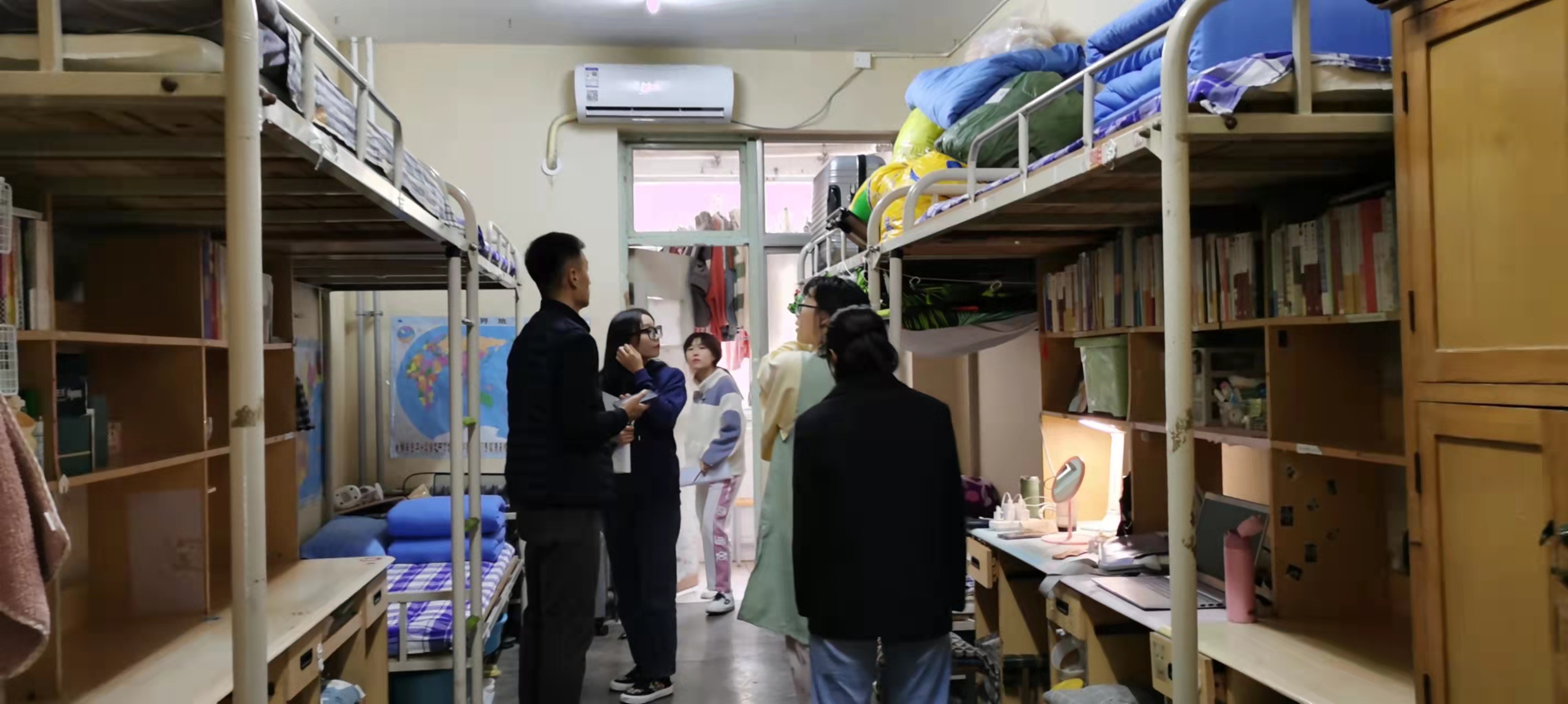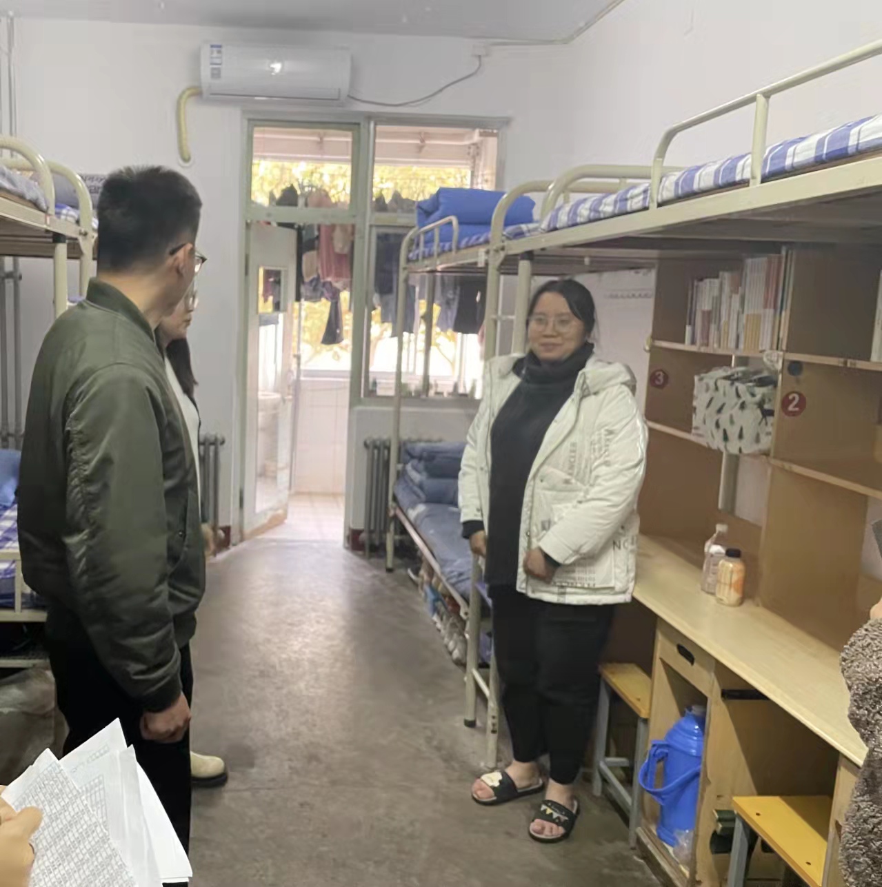 老师亲切地与学生交谈,了解大家的期末复习状态,并仔细排查各宿舍的安全隐患,提醒同学们要注意天气变化、小心感冒。在走访大一新生宿舍的过程中,老师们细心询问同学们的学习状况和宿舍生活近况,叮嘱同学们要注意用电安全,遵守宿舍规章制度。在走访高年级宿舍特别是大三宿舍时,老师们不但对其宿舍卫生和安全问题表示关注,而且对同学们的学习状况和未来规划表示关心,老师们讲到:大三是人生发展的关键时期,同学们在宿舍中不但要维持良好的卫生环境和安全环境,更要营造良好的宿舍学习氛围,舍友之间要相互支持和相互鼓励,为未来考研考公做充分的准备。为了避免出现安全隐患,老师们在本次走访中多次向同学们强调要规范用电行为,注意消防安全。期末考试将至,老师们也敦促大家要合理安排时间,认真复习,树立诚信考试观念。在对各年级宿舍进行走访后,老师们对同学们的宿舍卫生、安全状况表示肯定,并再次强调同学们要保持宿舍卫生,强化宿舍凝聚力,保持积极上进的宿舍氛围,营造一个干净整洁的学习和生活环境。同学们耐心地听着,与老师进行交流的同时对老师的关心表达由衷的感谢。 安全记与心,卫生践于行。此次宿舍走访,不仅加强了师生之间的联系,使同学们感受到学院的温暖,而且有利于提高学生的安全卫生意识,养成良好的生活习惯,营造舍风正、学风浓的良好宿舍氛围。(通讯员 陈淇)