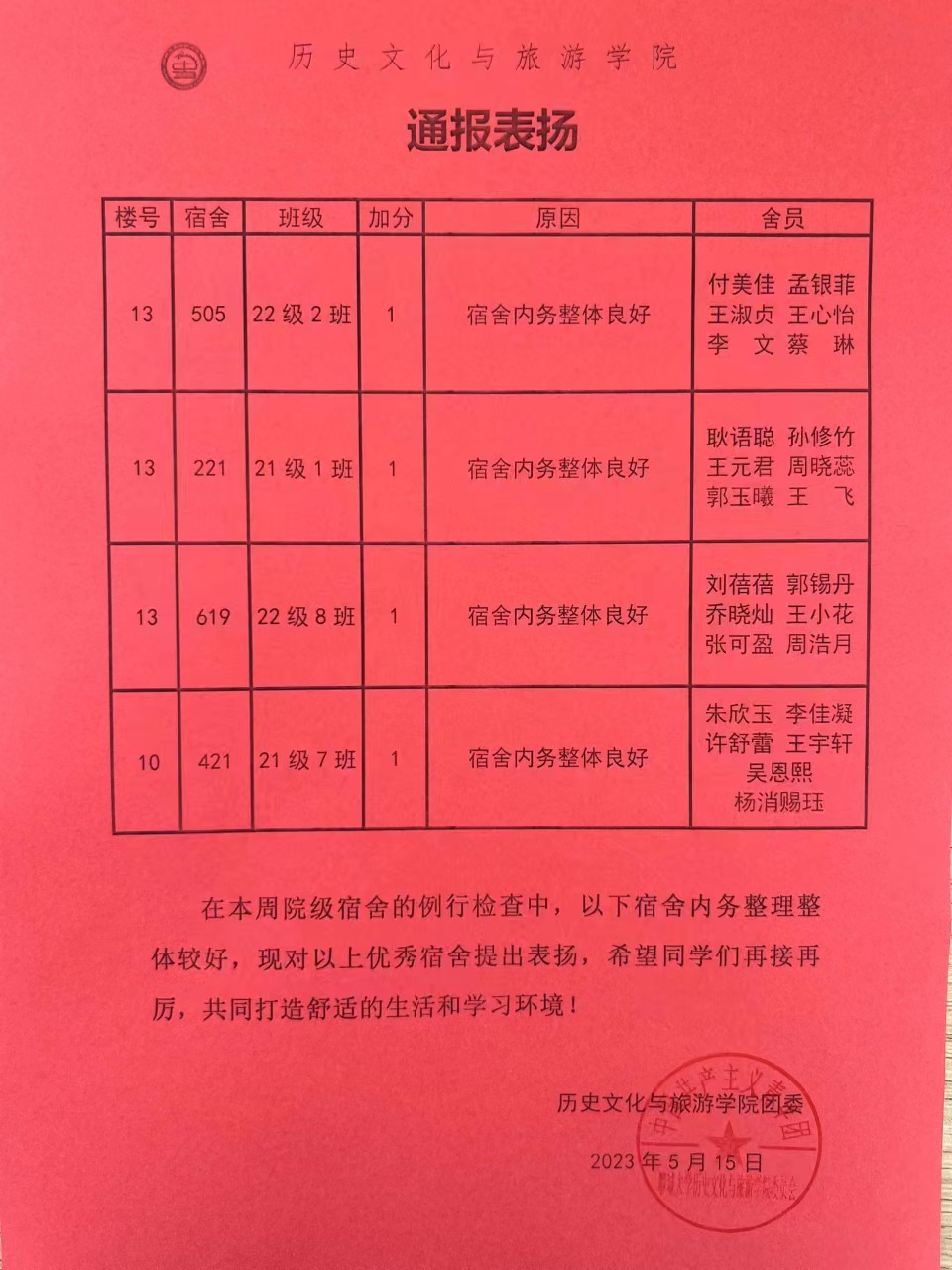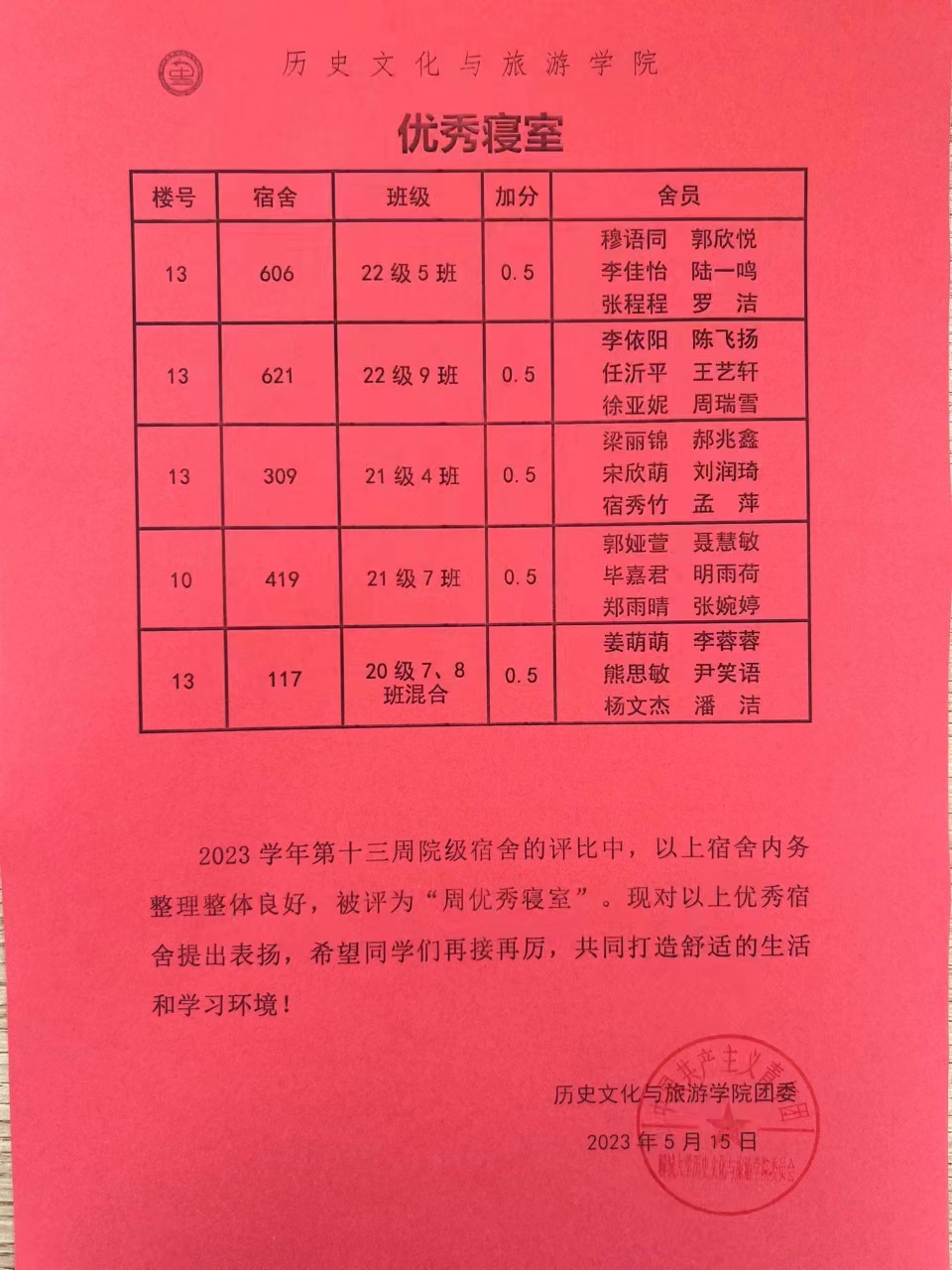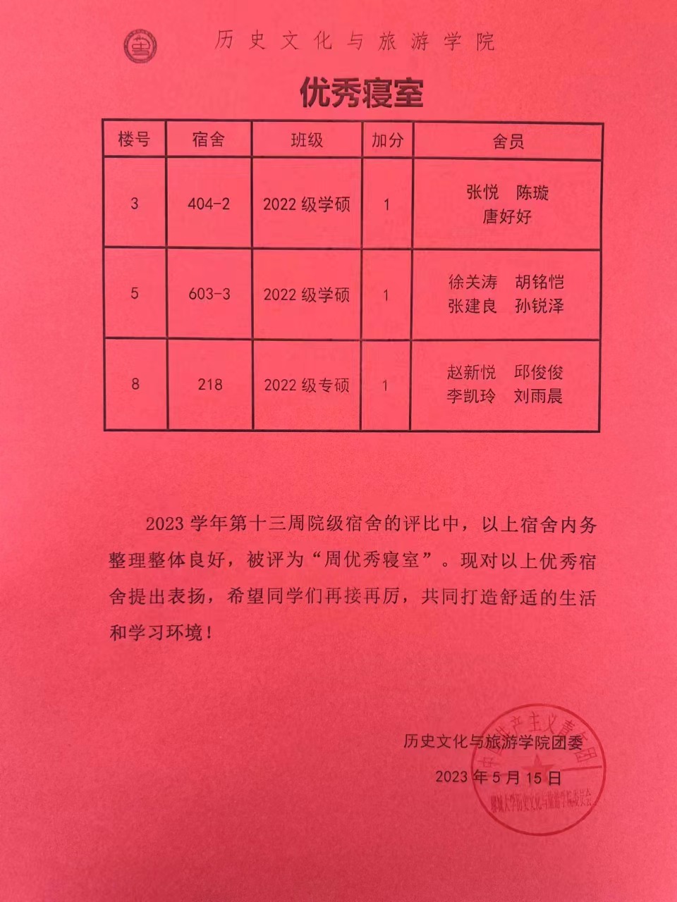 上一篇:点击查看第十二周优秀宿舍评比名单