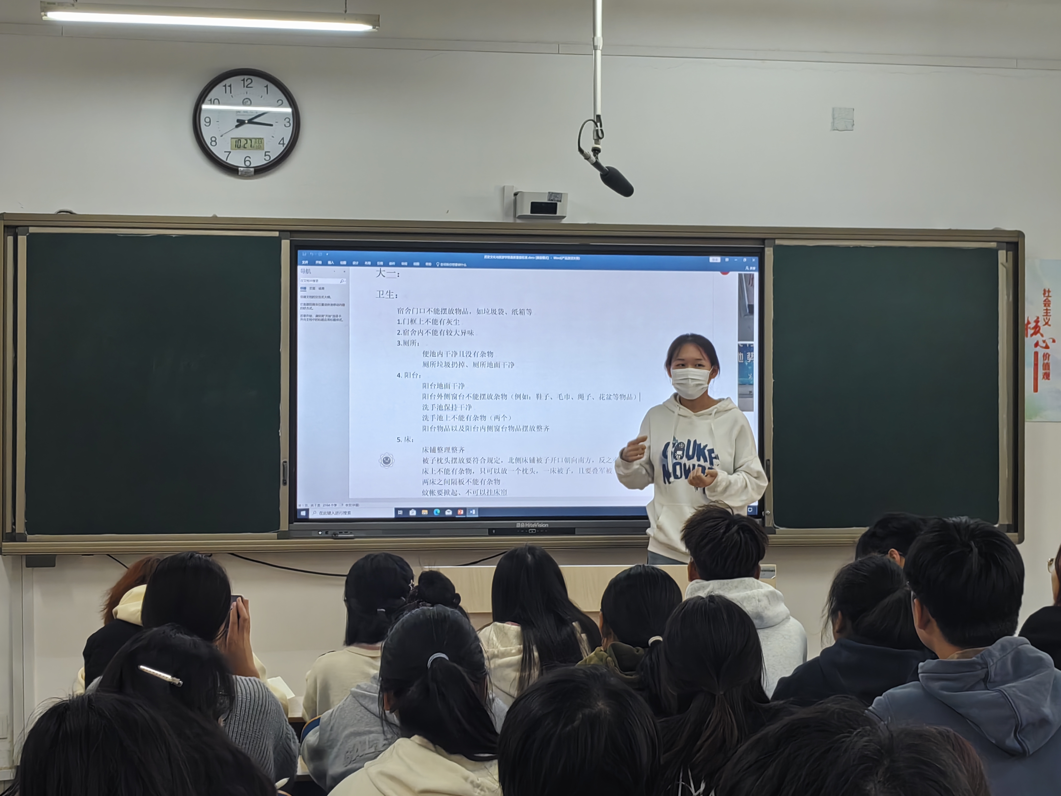 于6#A305举办2024级宿舍长培训会。辅导员陈泉润、2024级学生宿舍长参加本次培训会。 培训会上,陈泉润以人际关系处理和宿舍建设角度为出发点,为宿舍长提供了一些实用的宿舍管理建议和方法。他指出,宿舍是一个小集体,舍长要发挥桥梁和纽带的作用,协调好宿舍成员之间的关系,增强宿舍的凝聚力和向心力。在宿舍卫生与安全方面,陈泉润详细地为宿舍长介绍宿舍卫生检查细则,并强调要保持宿舍内整洁干净,定期打扫地面、桌面等区域,严禁私拉乱接电线,注意用电安全,不使用大功率违规电器,防止火灾等安全事故的发生。 宿管中心负责人详细介绍了宿舍管理的各项规章制度,包括作息时间、宿舍违纪处理、消防安全注意事项等。同时,她还强调遵守规章制度的重要性,并呼吁宿舍长们能够以身作则,带领宿舍成员共同营造一个秩序井然的宿舍环境。 培训会现场气氛融洽,24级宿舍长认真聆听,积极参与互动。他们纷纷表示,通过此次培训,对自己的职责有了更清晰的认识。在今后的工作中,将努力履行宿舍长的职责,为打造优秀宿舍贡献自己的力量。 本次宿舍长培训会的顺利举办,不仅有助于宿舍长在遇到紧急情况时采取有效措施,保障同学们的生命财产安全,进一步明确宿舍长在宿舍中的责任和义务,提高其管理能力和服务意识,从而为新学期的宿舍管理工作奠定坚实基础。 (供稿:李瑞瑄 初审:裴一玮 复审:张程程 终审:尤姗姗)