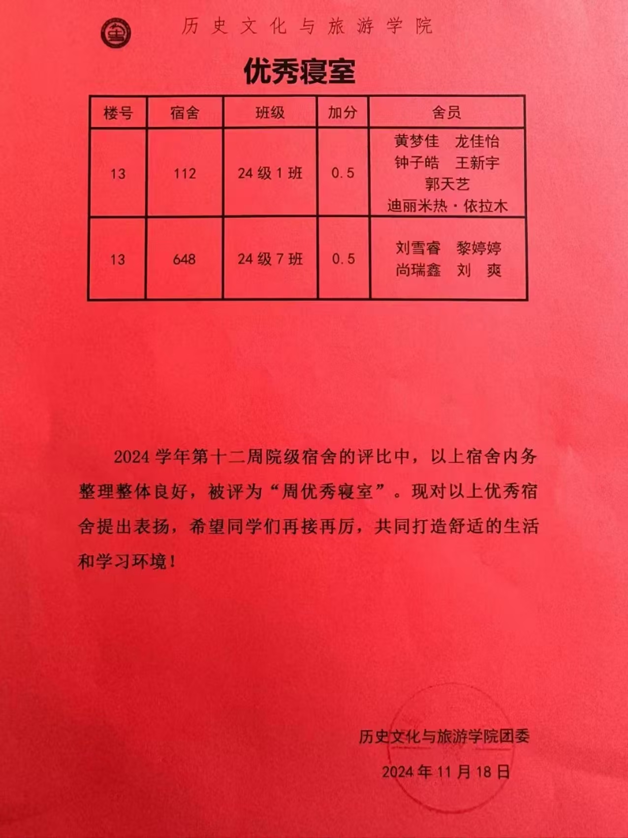 文明宿舍映风采,和谐环境展新颜。为营造整洁有序、温暖和谐、团结友善的宿舍环境,增强同学们的凝聚力,推动宿舍文化健康发展,第十二周,小妲己直播