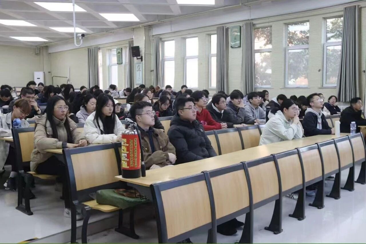于6#A106报告厅举办消防灭火讲座。学院辅导员王旭辉,班主任陈璐、唐若菡及部分教师参与本次活动,并邀请小妲己直播