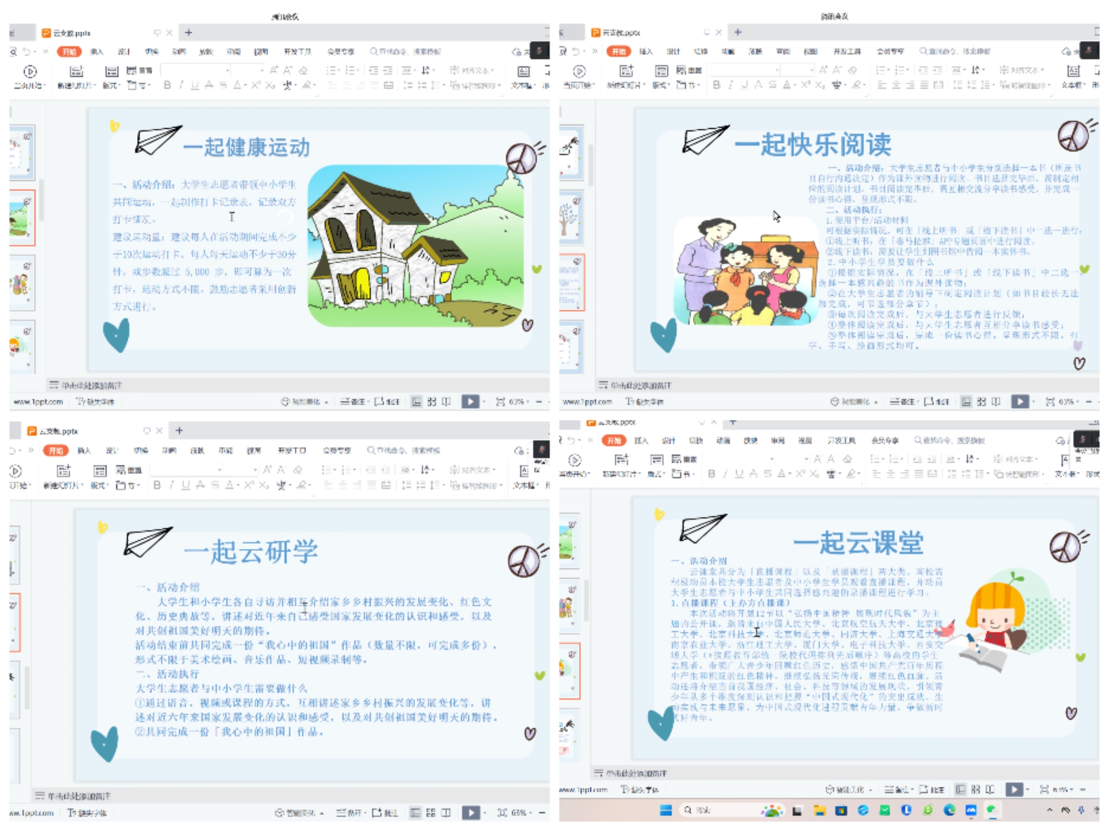 举办“一起云支教”线上培训会议,向志愿者讲解云支教的具体工作安排。本次会议由创新实践部徐梦秋担任主持人。 此次会议围绕活动简介、活动要求、志愿者要求三个主题展开,帮助志愿者进一步理解云支教活动的内容和性质。培训会议中,主持人向参会的志愿者强调了活动的开展时间和主要活动内容。本次活动开展时间为2023年7月25日-2023年8月24日,共31天涵盖四大板块,分别是:“一起快乐阅读”活动、“一起健康运动”活动、“一起云课堂”活动、“一起云研学”活动。随后,主持人对以上四个板块内容进行介绍,分别从板块介绍、活动执行、中学生需完成的内容、大学生需完成的内容四方面进行解读,详细说明志愿者的具体任务和职责。会议最后,主持人对志愿者提出要求。具体要求如下: 1.做好学生信息的保密工作,不得泄露学生个人信息 2.活动匹配完成后,不得随意退出活动 3.志愿者需合理安排时间,完成必须的志愿时长 讲解结束后,主持人向志愿者强调了志愿服务的五大原则“尊重、宽容、真诚、从俗、适度”,并对志愿者所提出的问题进行一一解答。 通过此次线上培训,鼓励学生积极践行志愿精神、传递服务力量,坚定了志愿者的服务决心,提高志愿者的服务水平,有利于志愿者在活动进行期间更有效率的开展“云支教”活动。 (图文:岳珍珠 初审:吴志钰 复审:和稀如 终审:辛超)