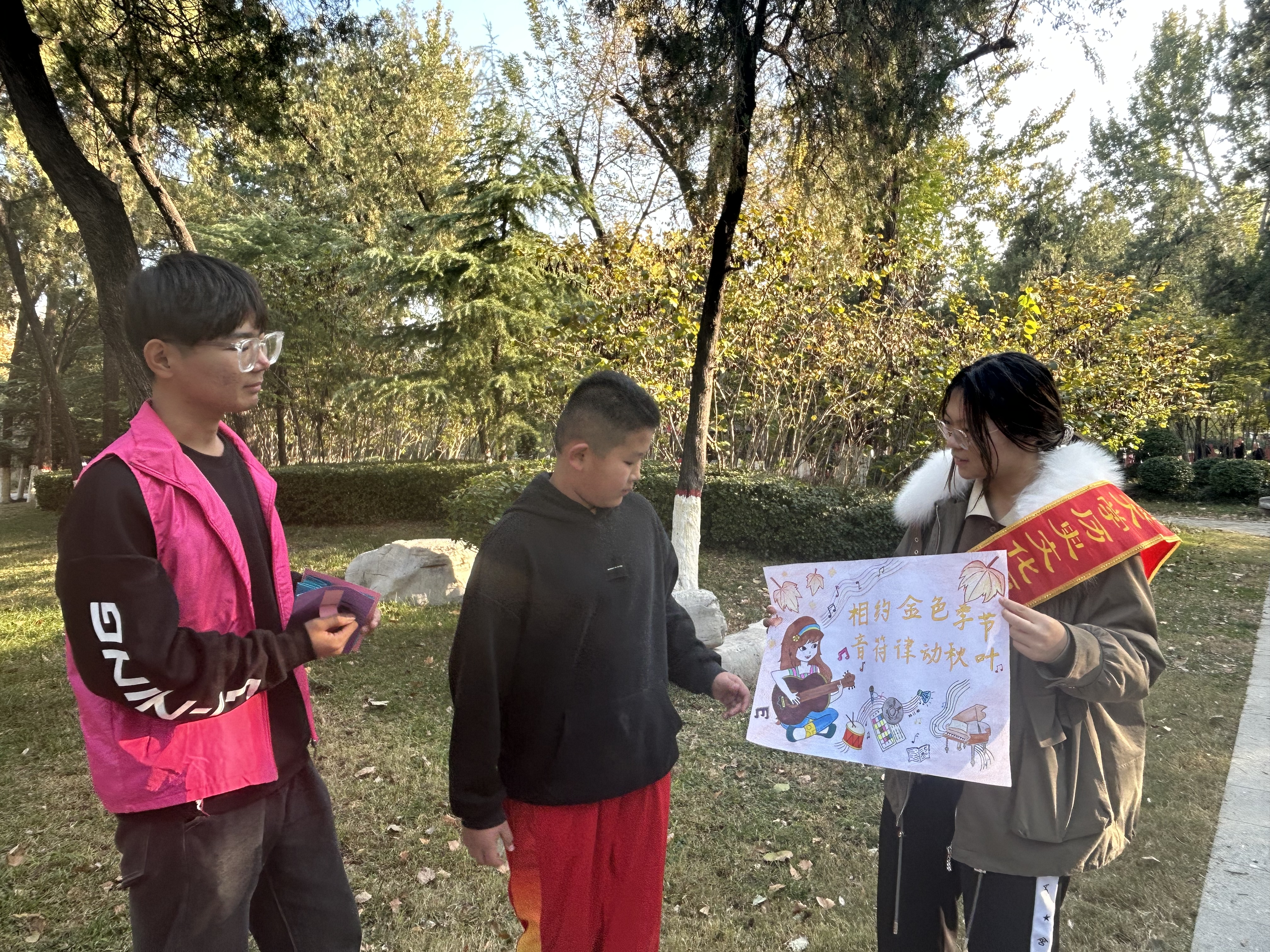 于聊城市人民公园举办“相约金色季节,音符律动秋叶”活动。 活动伊始,志愿者通过向群众采访,了解群众对于音乐的基本看法和认识。群众积极表达观点,踊跃参与。志愿者了解到,大部分群众都有自己喜爱的歌曲种类,仍存在少数群众对音乐知识掌握薄弱。志愿者介绍到,音乐是人类最古老、最普遍性和感染力的艺术形式之一,它能够有效地传达思想和情感,带来心灵上的愉悦和共鸣。随后,志愿者借助仿制手风琴等工具向群众介绍相关乐器,并向群众普及乐器使用的注意事项。现场气氛轻松活跃。 志愿者表示,不同种类的乐器可以通过多种方式产生声音,并邀请群众尝试弹奏乐器。为了使群众对音乐之魅力有更深刻的感触,志愿者向群众播放相关歌曲,并详细介绍每首歌曲背后的创作故事和大众感受,并邀请群众分享自己的见解。群众各抒己见,切实增强了对音乐的了解。最后,志愿者呼吁群众加入体悟音乐、创作音乐的行列中来,提升文化素养。群众纷纷表示今后会更加重视音乐之美,攀登美妙的人生音阶。 本次活动的顺利举办,有利于帮助群众近距离认识和感悟音乐,促进优秀音乐文化深入群众生活,提升群众的幸福感和满足感,助力社会音乐文化的发展。 (供稿:宋佳珊 摄影:庄欣彤 初审:庄欣彤 复审:吴志钰 终审:尤姗姗)