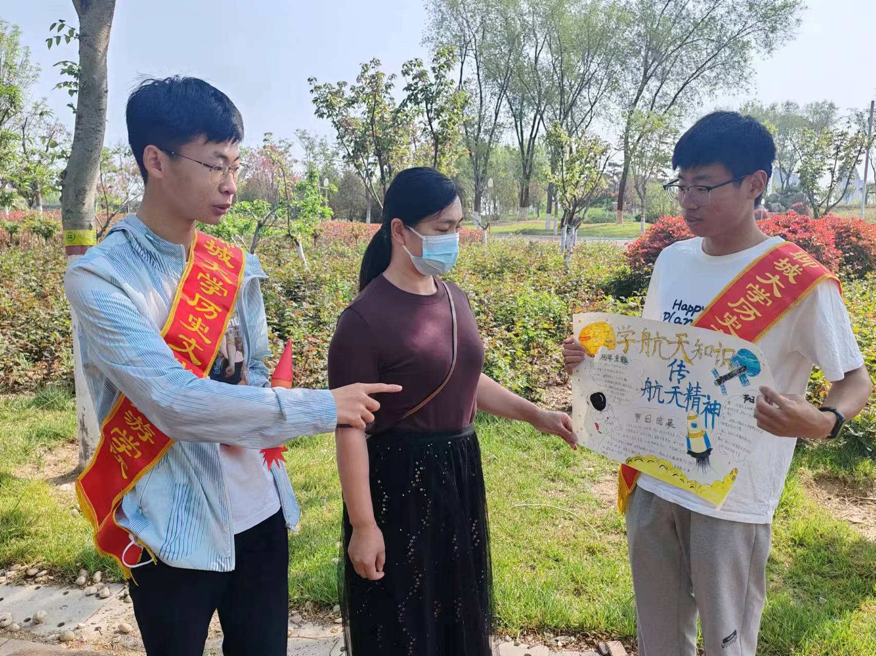 于聊城市九州洼月季公园举办“学航天知识,传航天精神”活动。 志愿者借助线上网络问卷和线下采访的形式,调查群众对于航天知识和航天精神的掌握情况。通过数据整合、分析,志愿者发现大多人对航天精神有较深的认识。志愿者向群众播放《百家讲坛》中关于载人航天的视频片段,并向群众普及航天小知识。志愿者表示,载人航天工程实施以来,航天团队在深入探索的伟大实践中,铸就了“特别能吃苦、特别能战斗、特别能攻关、特别能奉献”的载人航天精神。播放结束后,群众展开了热烈的讨论,纷纷表示正是由于一代代的航天人艰苦奋斗,攻坚克难,才会有如今中国航天事业的蓬勃发展。随后,志愿者组织群众进行航天知识问答小游戏,在规定的时间内群众需要回答抽中的问题。活动氛围和谐融洽,群众纷纷表示自己受益匪浅。活动进入尾声,志愿者呼吁群众在日常生活中多多关注我国航天事业的发展,在思想上将载人航天精神视为宝贵的民族精神财富。 习近平总书记指出,“探索浩瀚宇宙,发展航天事业,建设航天强国,是我们不懈追求的航天梦”。本次活动的顺利举办,有助于群众深入理解航天精神,并将其融入到日常生活中,切实走好自己的人生路。 (供稿:宋佳珊 摄影:裴一玮 初审:庄欣彤 复审:李友怡 终审:尤姗姗)
