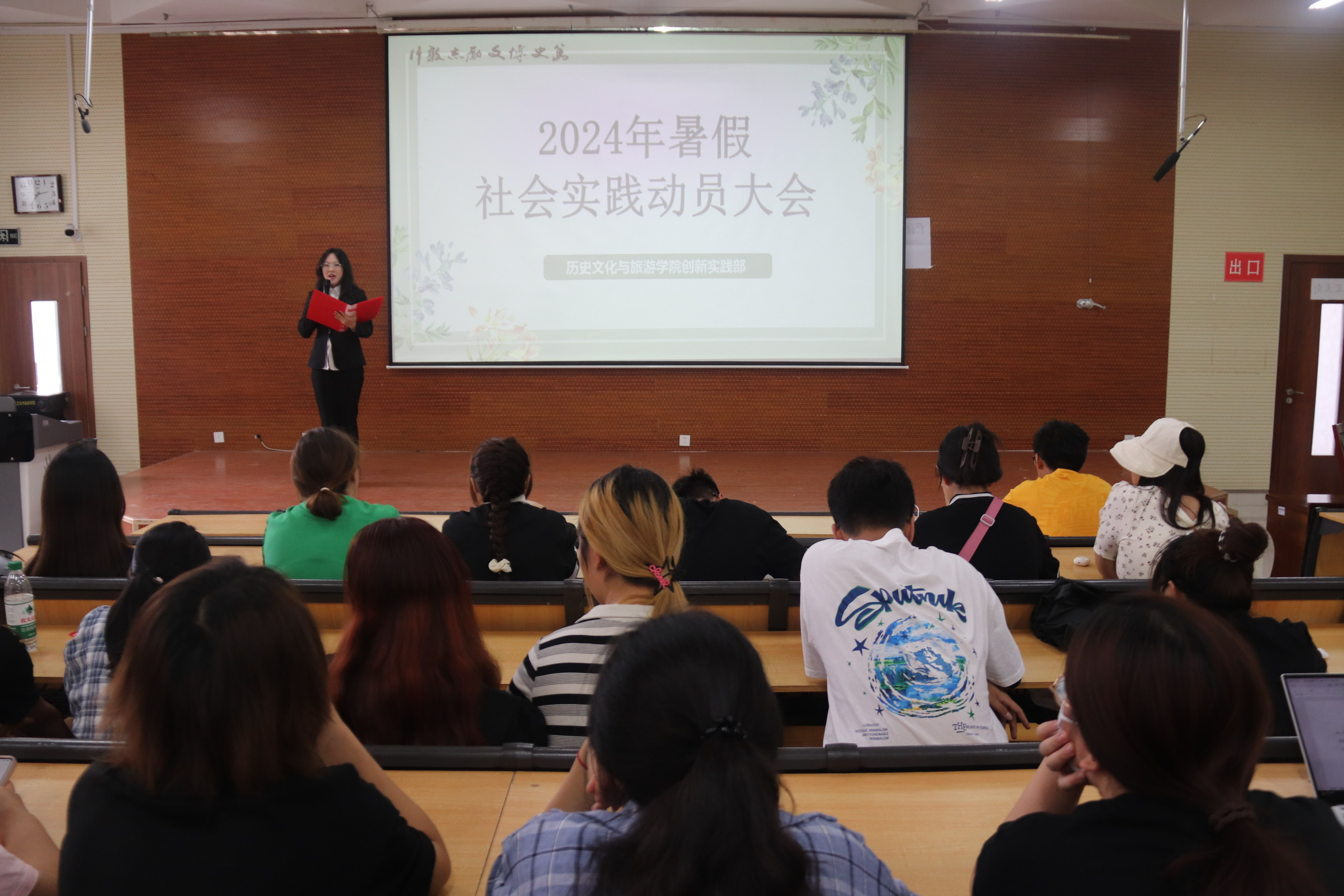 为促进暑假社会实践活动的开展,激发青年学生参与社会实践的热情,6月16日,我院于6#106报告厅举办暑假社会实践动员大会。 主持人详细介绍社会实践的重要意义,指出社会实践是实现高校教育目标的必然途径,它有助于学生将理论知识转化为实际操作能力,提高实践操作能力。同时,学生也可以更好地了解社会现状和问题,从而增强社会责任感,并在实践中为社会作出贡献。在明晰社会实践的目的和重要意义后,创新实践部成员向同学们介绍社会实践的相关流程以及系统操作的注意事项,并就社会实践立项、结项、团队构成及分工、媒体宣传途径等事宜进行了细致地讲解。其中,徐梦雪详细介绍社会实践活动主题和点子的写作要求,针对活动类型、活动内容、活动形式作简要说明;韦家欣讲解策划案和调研报告的写作要求,要求内容真实丰富,材料选取得当,强调报告要做到逻辑严谨,条理清晰,主题明确;邓宇杰和王淑贞分别讲解ppt、视频的制作和专项申请以及评分细则的改动,帮助同学们顺利开展社会实践,有效巩固社会实践的成果。 社会实践是大学生增强社会认知、体验发展进步、强化责任担当的重要途径。本次暑假社会实践动员大会的顺利举办,有利于加强青年学生对社会实践的认识,为落实暑假社会实践工作奠定了基础,同时激发青年学生的创新精神和担当意识,鼓励他们以积极的心态参与社会实践,以逐梦笃行的精神迎接实践挑战。 (供稿:郑怡佳 初审:岳珍珠 复审:吴志钰 终审:尤姗姗)