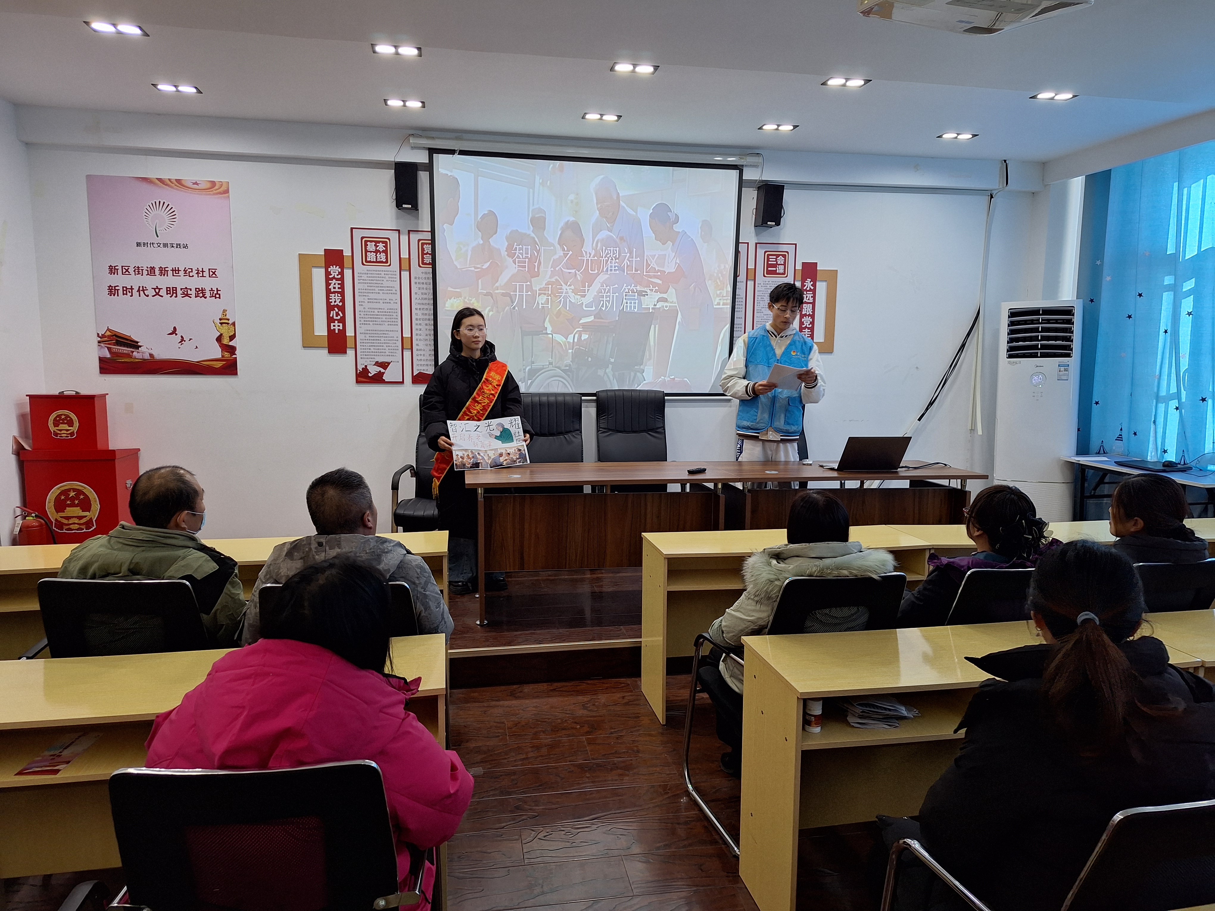 于聊城市新世纪社区党群服务中心举办“智汇之光耀社区,开启养老新篇章”活动。 中华民族向来有尊老敬老的优良传统,这一传统贯穿历史长河,是社会文明进步的重要标志。在新时代,如何让老人们享受更加充实、美好的晚年生活,成为全社会共同关注的话题。志愿者依托精心制作的主题展板和知识卡片向老人们讲述健康生活常识,帮助老人们增加对健康养老生活的认知。随后,志愿者邀请老人们共同制作手工闹钟,在制作的过程中让老人们感受手工制作的乐趣,满足其精神文化生活需求。志愿者还开展了交流会,与老人们进行亲切交流,询问并关心老人们的身体情况和生活状况,引导老人们彼此分享自己的生活经验以及生活小妙招,教授老人们使用智能设备,使现代智能伴随老人们的生活。活动最后,志愿者呼吁老人们踊跃投身于智慧养老的创新实践,赋能社区养老服务升级,齐心汇聚科技与人文的温暖力量,一同绘制一幅充满关怀与希望的社区养老新画卷 。 爱心汇聚力量,行动传递温暖。本次活动的顺利举办,不仅有助于提升老人们的幸福感和满足感,让老人们感受到快乐与温暖,而且有助于增强社会尊老、敬老、爱老的意识,营造关爱老人的社会氛围,推动形成和谐、友爱的社会环境。 (供稿:黄博雨 初审:魏志鹏 复审:张程程 终审:尤姗姗)