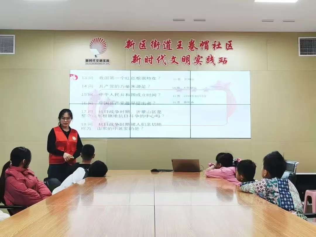 春雨志愿服务团于聊城市东昌府区王卷帽社区举办“时代榜样在我心”社区志愿活动。 志愿者借助沂蒙文化主题展板,向小朋友讲述沂蒙精神的历史背景和内涵。从沂蒙精神的起源到当今时代沂蒙精神的传承,小朋友对沂蒙精神有了初步的理解与认识。为加深小朋友对沂蒙精神的认识,志愿者组织沂蒙精神知识问答活动,并精心穿插沂蒙红嫂明德英用乳汁救伤员、沂蒙六姐妹昼夜赶制军粮等红色故事。小朋友积极参与,踊跃举手回答问题,展现出对沂蒙精神的感悟与热爱,帮助小朋友更好地将沂蒙精神内化于心、外化于行。志愿者通过对比沂蒙山区今昔巨变的照片,展现沂蒙精神在脱贫攻坚、乡村振兴中的时代传承,让小朋友深刻感悟榜样力量与红色基因的永恒价值,在他们内心埋下红色种子。活动最后,志愿者化身知识的传播者,将精心挑选的《沂蒙红嫂故事集》《战火中的小英雄》等书籍和文具赠送给小朋友,鼓励他们继承和发展沂蒙精神,并将其融入日常生活中,为社会发展贡献自己的一份力量。 本次活动的顺利举办,不仅有利于帮助小朋友在成长过程中树立积极向上的价值观,增进对沂蒙精神的认识,而且有助于帮助小朋友们传承红色基因,厚植家国情怀,推动红色文化的世代发展。 (供稿:徐会锴 摄影:臧文沛 初审:魏志鹏 苏鑫超 复审:张程程 终审:尤姗姗)