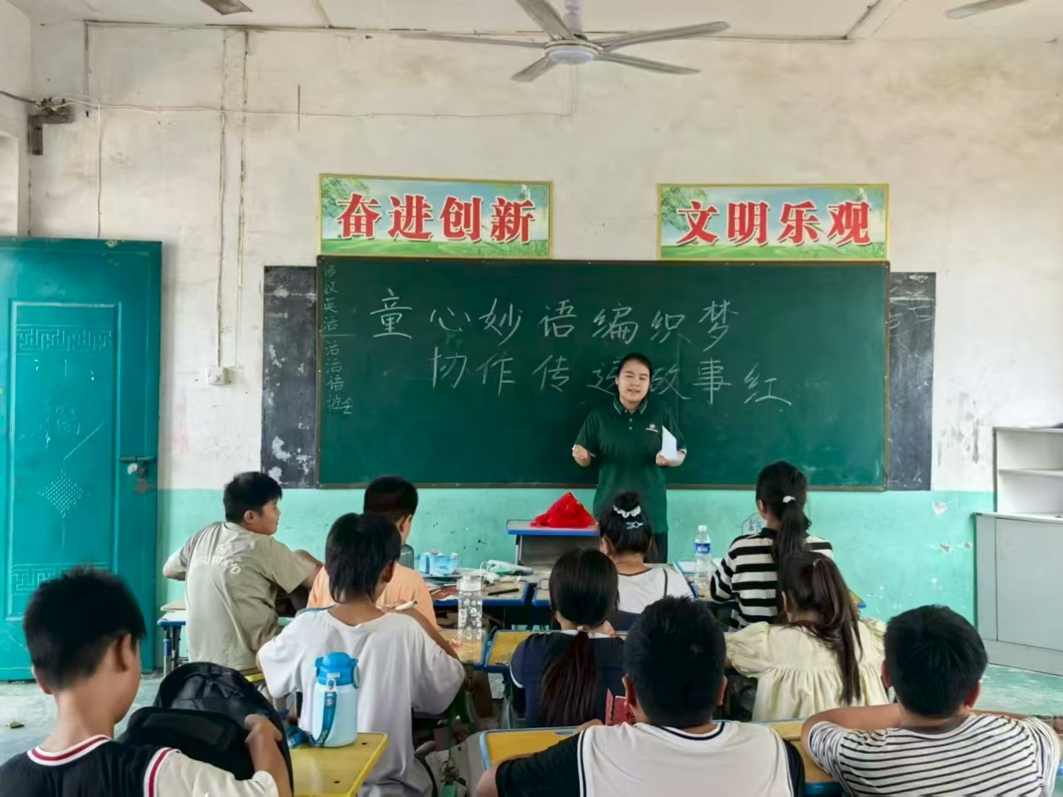 “红韵民俗浸润 推普助力振兴”乡音筑梦青年团于河南省商丘市睢县白楼乡冯庄小学开展“童心妙语编织梦,协作传递故事虹”志愿服务活动。 活动过程中,志愿者采用“团队共创故事”模式,以提升儿童的普通话表达能力。志愿者讲述故事开篇,随后引导儿童自由组队,通过集体想象共同完成故事创作。在创作阶段,志愿者在旁提供适时的思路引导,既帮助儿童拓展想象空间,又提高了他们的普通话表达能力。互动环节,在志愿者的耐心引导下,儿童的自信心逐步增强。他们不仅能够大胆地用普通话进行交流,还主动拿起纸笔将想法转化为书面文字,字里行间尽显童真与创意。各小组代表上台展示成果时,起初略带紧张的儿童,随着故事的推进逐渐进入状态,不仅流畅完成讲述,更在互动过程中提升了普通话运用的熟练度。一个个充满奇思妙想的故事结局,展现了儿童对世界的独特认知。 本次活动的顺利举办,不仅帮助儿童深刻认识到普通话在日常生活中的重要性,使其在轻松氛围中增强了对普通话的认同,还进一步厚植了他们对中华文化的热爱与文化自信,为“推普助力振兴”注入了鲜活的力量。 (供稿:段盛紫 黄博雨 初审:魏志鹏 复审:李月 终审:尤姗姗)