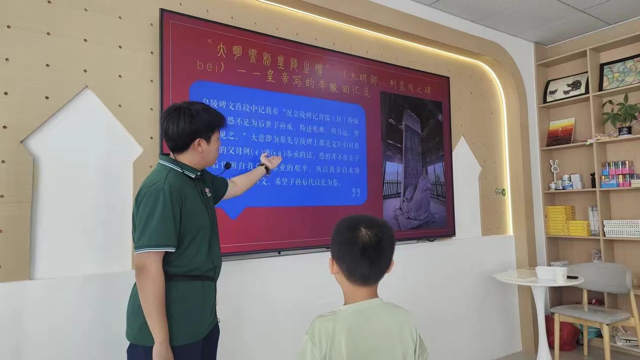 “欢声‘孝’语·普润凤阳”苔花筑梦推普志愿团于安徽省滁州市凤阳县如意社区开展“雅言述古今,文脉润童心”凤阳文化探源课赋能推普活动。 奖状映初心,自然笔记显巧思 在“自然笔记优秀作品颁奖”环节中,志愿者为前一日课程中获得“自然笔记创作”优秀作品的同学颁发奖状,并肯定其以文字、绘画等方式记录凤阳自然风貌的行为。获奖同学举着奖状笑靥如花,现场掌声与欢笑声交织,既鼓励同学对家乡自然之美的捕捉,更让标准发音的种子在同学心中悄然扎根。 明皇陵探秘,孝史雅言共传承 在“明皇陵探秘”课堂上,志愿者以时间轴梳理“朱元璋与明皇陵”脉络,聚焦碑刻记载的孝亲故事,纠正“碑”字轻读误区,示范“碑”字发音时的要领。在“棂星门解说”环节,同学们分组练习解说词,志愿者巡查纠错,并组织同学们标注“棂星门”“神道”等名称拼音,规范“棂”字发音,历史的温度与语言的精准在此刻共鸣。 花鼓话变迁,非遗声韵入童心 “凤阳花鼓与历史变迁”环节让非遗文化在普通话中流转。志愿者借《凤阳县志》片段,阐释花鼓起源与演变,强调“起源”“讨乞”读音。同时,志愿者通过知识问答,围绕“凤阳花鼓列入国家级非遗年份”等问题,帮助同学完整作答,并即时纠正发音,激发同学的学习热情,为非遗故事更添一份生动。 奖状见证成长足迹,雅言传递文化薪火。本次活动的顺利举办,不仅有利于让青少年以普通话为钥匙解码家乡文化,加深对凤阳历史与非遗文化的理解,而且有利于帮助青少年规范语言表达,推动普通话在乡村的深度普及,为地方文化传承和语言文字事业发展筑牢根基,让乡村振兴的文化根基在琅琅书声中愈发坚实。 (供稿:王柯懿 陆雅馨 初审:宋佳珊 复审:李月 终审:尤姗姗)