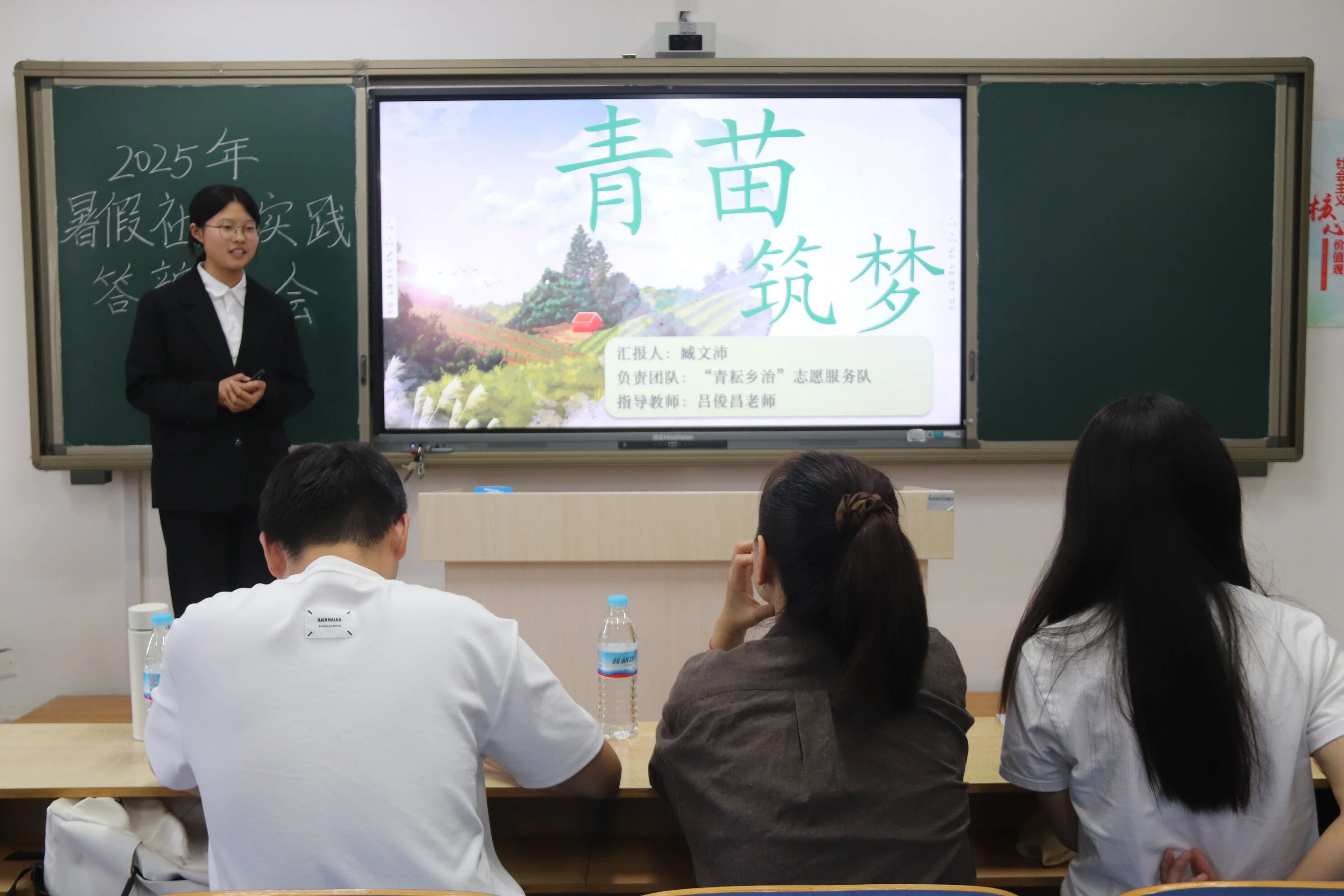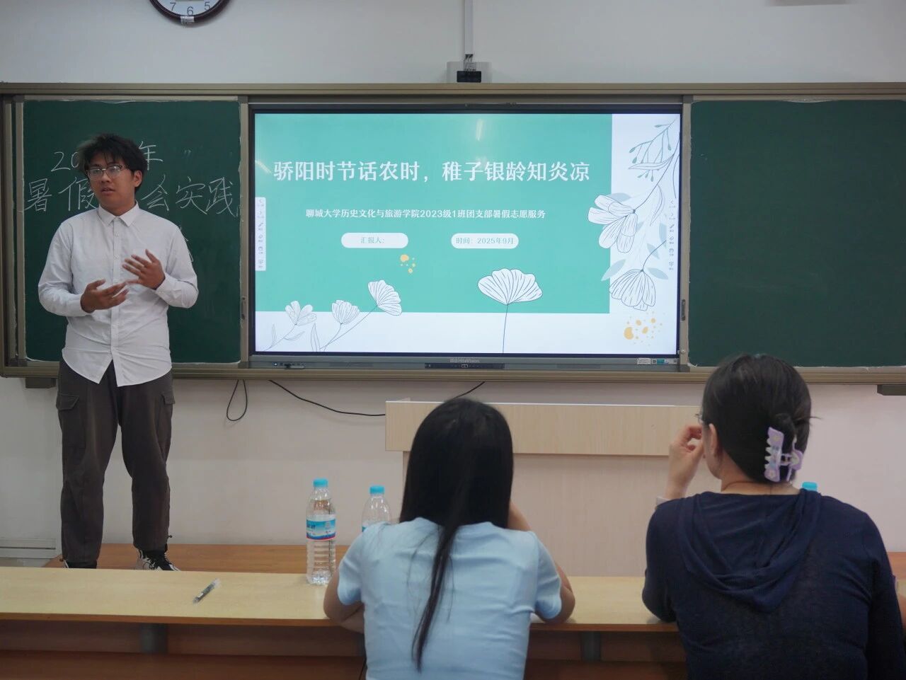 于6#A403、A404教室举办2025年暑假社会实践答辩会。 本次答辩分为学生组织部门答辩与班级实践答辩两个部分,学院团委书记石晓晗和学生评委针对答辩者的现场表现、实践报告完整性及成果落地价值等,进行细致点评与综合评分。 在学生部门答辩中,团队聚焦于环境保护、齐文化传播、儿童健康、方言发展、普通话推广、助老服务等领域,依托PPT和短视频进行成果展示。其中,“古韵新声”调研服务队针对当前方言传播不足、文化传承面临挑战的现实情形,以“传播方言”为核心开展社会实践。服务队通过互动化调研,深入掌握方言传播现状与问题;并借助主题宣讲,向公众阐释方言承载地域文化、维系情感认同的重要意义。“绿芽行动”调研服务队立足全球生态环境治理需求及低碳发展趋势,围绕“低碳生活”主题开展社会实践。服务队通过知识科普、专题讲解等形式,向公众系统传递低碳生活理念。 暑假期间,13支以班级为单位的调研服务队围绕木版年画、齐鲁文化、红色踪迹、家庭叙事、助老数字化等多元主题开展实践探索,成果丰硕。各团队汇报人围绕“团队构成、实践背景、执行过程、核心成果、后续计划”五个维度进行汇报,全面阐述实践工作细节,展示详实的图文资料、生动的实践故事与清晰的成果梳理。其中,“青春暖桑榆,便民润邻里”调研服务队扎根社区开展系列服务,针对老年群众的“数字困境”,他们采取“一对一讲解+实操演示”的方式,帮助老人学会手机挂号、线上购物、视频聊天等技能,解决日常出行与生活中的实际难题,用耐心与细心传递温暖,以实际行动践行青年责任。 评委认真听取各团队汇报,在充分肯定团队在实践活动中展现的创新思维和社会责任感的同时,也从项目选题、活动对象、项目宣传、项目推进、成果转化等方面提出改进建议,鼓励同学们持续深耕,将短暂的实践转化为长期关注与行动。 本次暑假社会实践答辩会的成功举办,不仅为同学们提供了分享心得、相互学习的平台,还有效促进了理论与实践相结合,彰显了新时代青年扎根现实、服务社会的责任与情怀,续写了学院“以实践育新人”的育人篇章。 (供稿:罗佩华 郭俊霞 摄影:罗佩华 郭俊霞 初审:于舒然 复审:张程程 终审:尤姗姗)