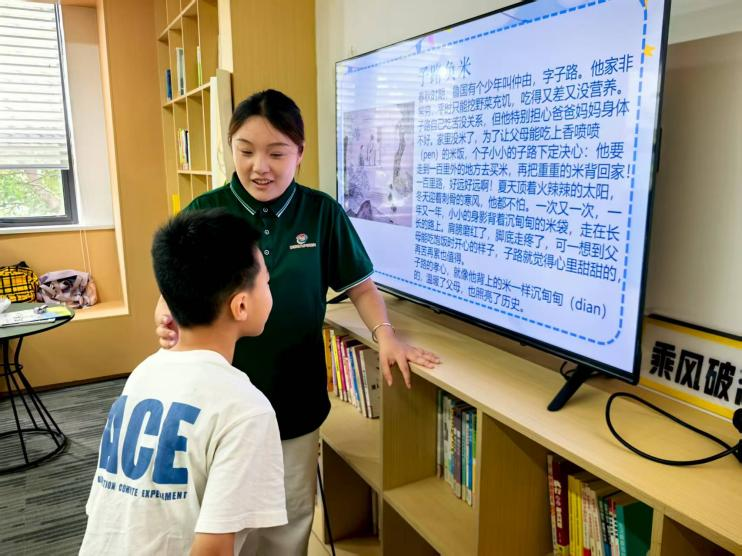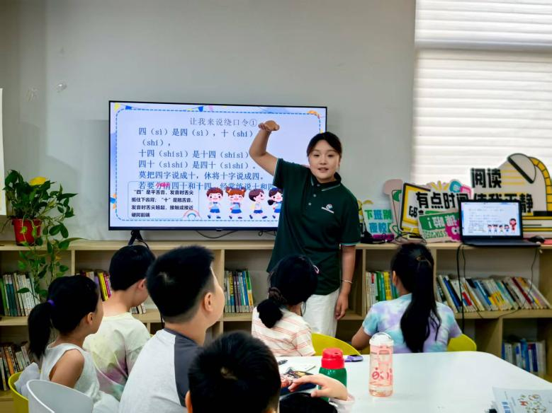 苔花筑梦推普志愿团于安徽省滁州市凤阳县如意社区举办“语通心,孝传情”主题活动,为当地青少年带来一场融合语言训练与文化传承的沉浸式课堂。活动设置“方言辨音”“普通话闯关”“孝韵朗诵”三大环节,在规范语言表达中厚植家国情怀,为乡村振兴注入青春力量。 活动通过“方言辨音擂台”趣味互动打破语言隔阂。在志愿者的引导下,通晓凤阳方言的青少年转动特制转盘,随机选出“吃药”“喝水”等常用词汇并用方言朗读。其他青少年背身凝神细听,转身用普通话精准复述。这场“乡音与国音的对话”,既保留方言魅力,更搭建起普通话规范表达的桥梁,让青少年在游戏中体悟语言转换的智慧。 “普通话大闯关”将课堂氛围推向高潮。青少年分组挑战《四和十》《望星空》《白鸽白鹅》三段绕口令,展开语音准确度与流畅度的较量,比拼引发阵阵喝彩。在“断句挑战”中,妙趣横生的句子考验着青少年的语言逻辑与节奏把控能力,助力其深化对语言结构的理解。志愿者逐字标注拼音、示范朗读,帮助青少年攻克方言惯性发音难点,让普通话成为青少年传递思想的利器。 压轴游戏“孝韵朗诵赛”以文化传承升华语言学习。伴着悠扬乐声,青少年声情并茂地朗诵普通话版《黄香温席》《子路负米》等孝道故事,字句间流淌着对传统美德的敬意。志愿者阐释日常点滴中的孝亲行为,帮助青少年明晰传统孝道在当下生活中的具体践行方式。课堂将孝文化精髓融入语言实践,引导青少年在“说标准话”的同时“做文明人”,实现语言能力与价值塑造的双向滋养。 从教学设计到现场引导,从语言帮扶到价值传递,志愿者通过语言文化激活教育热情,助力“有文化、善表达、懂传承”青少年的培育,生动诠释新时代青年在文化传承创新、发展建设中的责任担当,书写校地携手、以文化人的生动实践篇章。 (供稿:王柯懿 刘雪睿 摄影:*小妲己直播