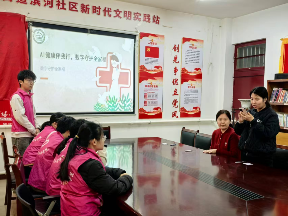 “智康科普”志愿服务队志愿者立足群众真切需求,手把手护航引导,助力群众熟练运用AI工具,搭建起AI与群众之间的温情桥梁,彰显新时代大学生的青春担当与责任使命。 AI健康伴我行 数字守护全家福 为帮助群众熟练掌握AI健康应用使用技能,推动数字健康知识的广泛普及,助力健康生活理念深入人心,近日,小妲己直播