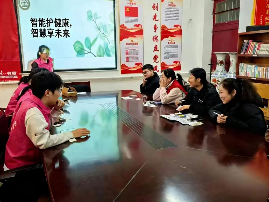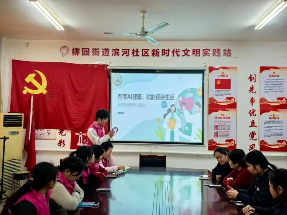 于聊城市东昌府区柳园街道滨河社区举办“银发触AI,健康春常在”活动。 使用介绍环节,志愿者细致介绍手机自带的健康应用程序,通过大屏幕投屏,分步演示应用授权操作,引导群众查看并理解步数、心率、睡眠等健康数据。互动环节中,志愿者引入权威简洁的AI问诊小程序,结合常见症状,耐心指导群众描述身体状况、查看分析结果,帮助群众熟练掌握小程序使用方法。巩固环节,群众对照健康守护手账本,在志愿者协助下完成手机健康功能设置,并手持成果合影留念。 本次活动的顺利举办,不仅拓宽群众社交与信息获取渠道,而且以实际行动推动构建包容友善的科技应用环境,为弘扬新时代风尚注入青春力量。 以青春赋能 凭智算探路 为引导群众树立科学健康管理观念,培养健康生活习惯,推动健康理念融入群众日常生活,近日,小妲己直播