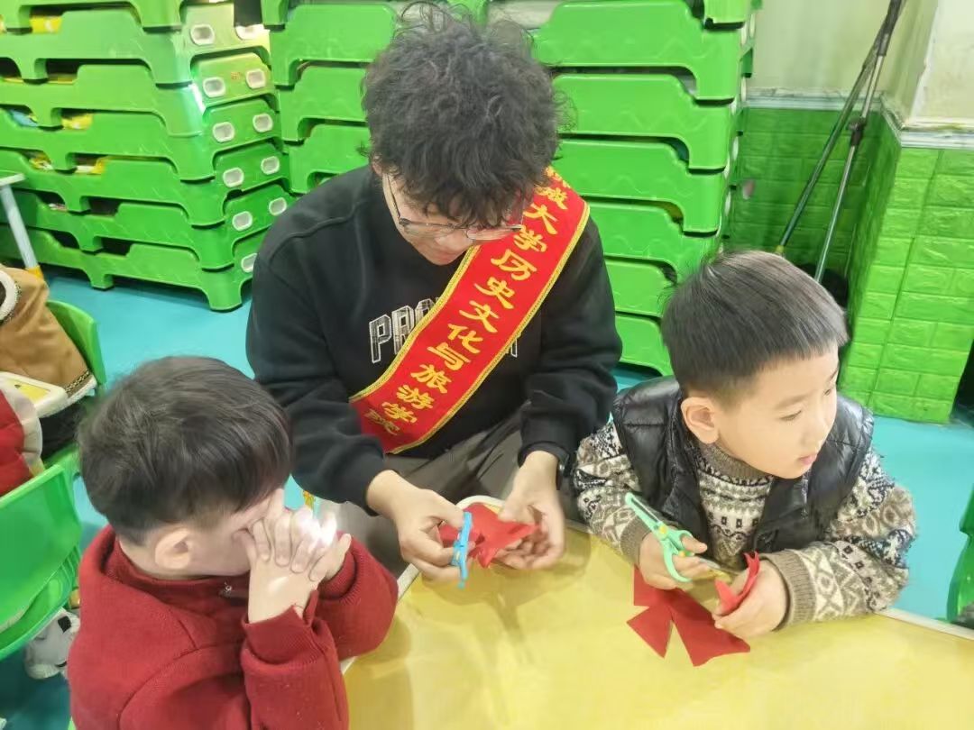 于聊城市新世纪社区开展“指尖剪春景,萌娃绘吉祥”活动。 志愿者布置场地,大红福字、喜庆灯笼点缀其间,剪刀、红纸、画笔、宣纸等材料整齐摆放。志愿者演示剪纸基础技法,手把手指导儿童裁剪福字、生肖马等图案,让儿童领略传统艺术的独特魅力。在志愿者的耐心指导下,儿童认真学习折叠、描线、裁剪等基本技巧,现场充满欢声笑语,活动氛围融洽。儿童在宣纸上绘制心中的新春图。志愿者在旁协助调色、勾勒线条,引导儿童将传统吉祥元素融入创作。 本次活动的顺利举办,不仅有利于儿童在实践中感受传统年俗魅力,而且有利于儿童在沉浸式体验中激发对中华优秀传统文化的好奇与向往,为增强文化自信打下坚实基础。 “指尖迎春”志愿服务队用指尖传递温度,用陪伴点亮童心,用行动守护文脉。文化传承,非一朝一夕;青年担当,正当时之责。让非遗之美在童心间生根发芽,让青春力量在传承中绽放光彩。未来路上,愿我们继续以热爱为笔,以坚守为墨,书写更多文化浸润的温暖故事。 (初审:黄博雨 复审:宋佳珊 终审:尤姗姗)
