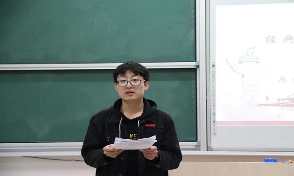 本科生党支部全体党员、预备党员、2019级7班团支部参加。 活动伊始,薛天老师对本次导读赏析活动的目的、意义进行了解读,并对《红旗谱》进行了简要介绍。随后,韩安康同学作为代表,对《红旗谱》一书进行了详尽的解读: 故事简介: 本书以冀中平原锁井镇地区朱老忠、严志和两家三代农民同地主冯老兰父子两代的矛盾斗争为叙事线索,主要以群众“反割头税”斗争和保定二师的学生爱国运动这两个事件为高潮。全书反映出1920年代到1930年代抗战前的北方农村社会阶级关系紧张、阶级矛盾激化的局面,展现当时农村地区的中国共产党宣传、组织、动员、领导农民群众起来进行革命斗争的历史面貌,也展现出在革命形势与斗争中,一批先进的农民群众逐渐成长为党领导下的革命战士的历程。 作者生平: 梁斌(1914--1996),近代作家,河北人,毕业于保定第二师范学校。十几岁时经历过家乡的农民斗争,他曾和同学经历过保定地区学生爱国运动。他在抗战时期和解放战争时期曾担任地下组织工作,相对了解农村革命活动;曾经创作多篇小说,作者丰富的革命斗争经历是《红旗谱》这本书创作的现实基础,他的一些人生经历乃至所见所闻是本书的重要素材。 经典导读: 本书名为《红旗谱》,意味着是在红色革命旗帜的指引下,就是在党的领导下取得胜利。谱系也显示着从最初的各小事件逐渐后续发展为大革命,革命也在逐渐壮大与接续。星星之火,可以燎原。红色基因代代相传,不断续写胜利的新篇章,我们也坚信红色谱系将更加辉煌。 阅读本书为我们进行一次革命情怀与英雄气概的精神洗礼。书中对于人物真性情的形象塑造相当细腻,刻画出较为革命理想化的人物-朱老忠,在他身上看到敢于斗争的激情、临危不惧的理性从容应对、坚定不移的品格、以暴制暴的硬汉精神气感;运涛和江涛兄弟的革命理想热情与心系家国的高尚情感。这样的形象品质令人读来无不感受到革命英雄主义精神的洗礼,这也激励我们树立昂扬向上的精神斗志与家国情怀,投身到伟大时代的实践中去。 经典赏析: 这是一部党史学习、“四史”教育的生动教材。全书中乡村叙事比较完整,乡土气息浓厚、对乡村生活景观画面的真实书写,这为革命在此地的开展铺设好背景。本书中的革命叙事比较真切,并没有将宏大的全国时代背景铺设的太多,将革命的开展代入到乡村社会的微观过程中去,帮助我们深刻了解到党在基层乡村社会领导群众开展革命、组织群众运动的微观历史过程。我们阅读这本书的意义之一在于:通过文学场景的展示,帮助我们更加细致地了解党在20年代的革命环境与微观运作、对于党史学习、“四史”教育都会大有裨益。 这是展现我们党贯彻执行群众路线的有力说明。《红旗谱》书中试图表达出:像朱老忠这样的群众逐渐走向革命的历程“就是受地主压迫的农民在党的启蒙、引导、教育下改变命运逐步觉醒的历程”。作者在书中传达出:“只有在中国共产党的领导下,才能更好地团结起来,战胜阶级敌人,赢取革命的胜利,最终实现自我的解放”。党派遣党员能够深入基层,了解民意与群众的心理诉求,想群众之所想、帮助群众打破地主对于他们的各种严苛的剥削压迫。这是对于解释中国共产党为什么能的重大时代课题的有力回答。正是因为在于民心归属,民心所向。密切联系群众是我们党执政地位得以巩固的根本保证,党的历史就是一部坚持群众路线的历史。这也启示我们党在新时代继续要密切联系群众、切实做到全心全意为人民服务,工作中执行群众路线。 这是一批先进农民群众的奋斗成长历程。正是在党的领导下,群众有了主心骨,农民的心理态度也有所转变。他们对于革命的信念逐渐培养起来:最初农民虽然生活困苦、受剥削压迫沉重,但大多数人求安稳、敢怒不敢言的状态,到逐渐认识到暴力反抗剥削与压迫、打倒地主阶级的必要性。经过党的领导与宣传,农民群众的阶级觉悟得以提高、阶级意识的觉醒,那种被地主阶级剥削压迫的被剥离感逐渐得以强化;在行动中吸取以往的经验教训、坚定跟随党的领导、走上正确的革命道路、成长为真正的革命战士。 而后,扈文洁、罗伊豪、田朝阳、王文哲四位同学分享了自己的读后感想: 《红旗谱》展现了中国农民在民主革命中寻找解放道路的曲折历程,其中,朱老忠与严志和是新旧交替时代的革命农民代表,他们从父兄辈的惨痛失败中吸取了教训,在斗争中找到了共产党,终于走上了正确的斗争道路。运涛、江涛、大贵等青年农民在共产党的培育下成长起来,成为了新一代革命者的代表,在斗争中逐渐成为了无产阶级战士。启示做为一名共产党员,应当多读红色经典,常读红色经典,了解历史,了解党。更加珍惜今天的幸福生活,向老一辈无产阶级革命者学习,培养自我坚韧不拔的个性,紧紧拥护在党的周围,为祖国的繁荣富强而努力。 ——2017级1班扈文洁 《红旗谱》是基于大革命时期的历史背景之下,以冀中平原三代农民和地主的尖锐矛盾斗争为主体,以“反割头税”和“二师学潮”事件为中心,生动地展示了当时北方地区农村阶级斗争和革命运动的壮丽图景,整部作品凸显出十分浓厚的民族风格和地方特色。小说中有这样一句话:“人,生在天地间,应当做一番有益于人类的事业。”作为一名青年党员,需发挥党员应尽的