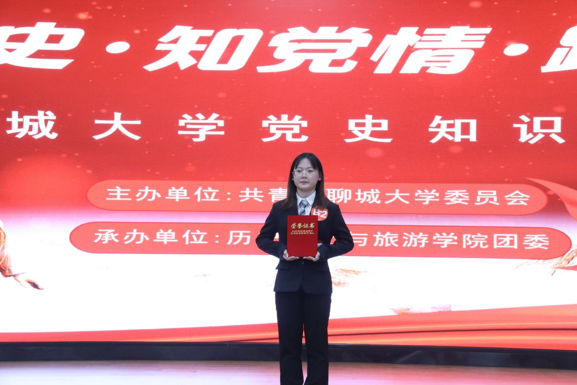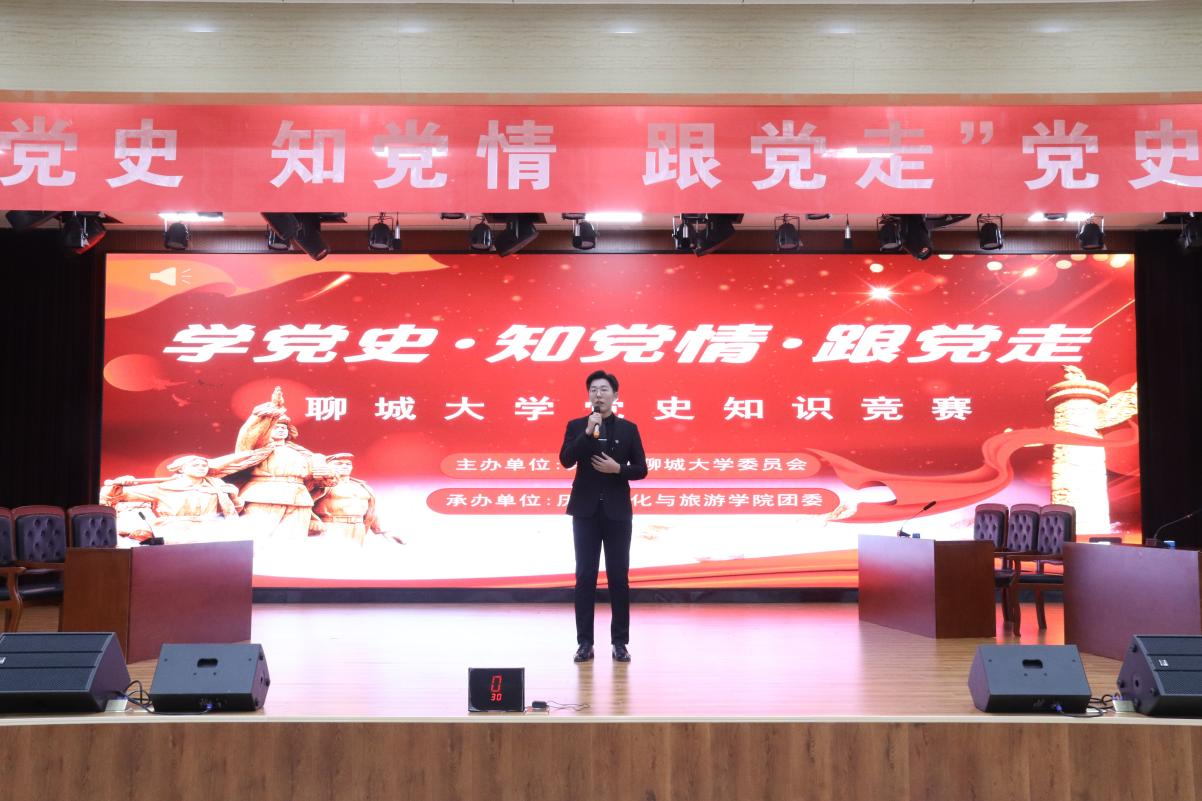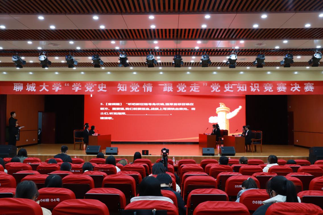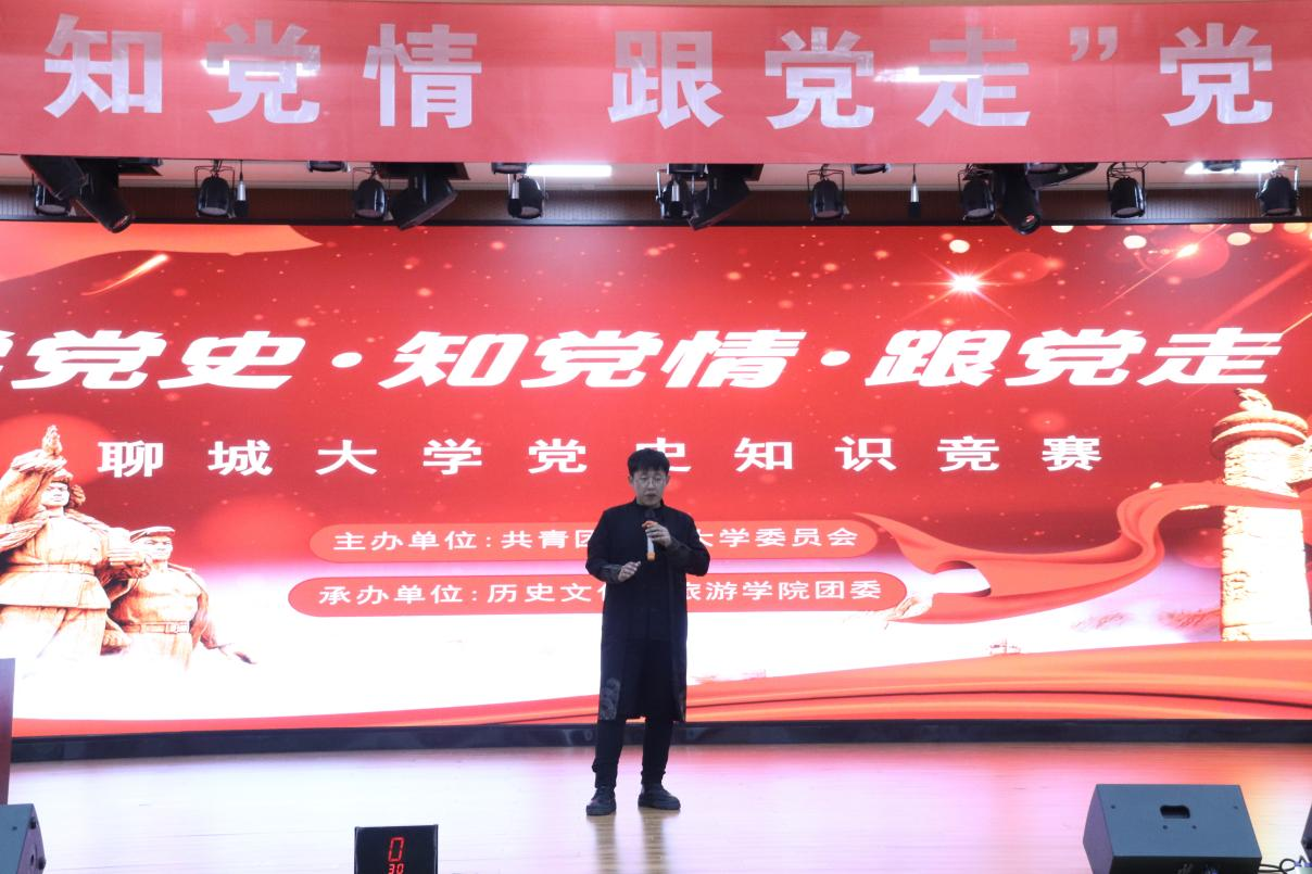团委书记李姮,辅导员薛天、薛晓宇、辛超、巨国运老师出席了本次活动。 本次决赛共设“星火挑战”和“砥砺前行”两个环节,9支队伍通过抽签分为三组进行小组淘汰赛。第一环节由必答题和抢答题组成,题目以党史、党章、新中国史等知识为主线,涵盖时政热点等相关内容,运用红色歌曲和视频等丰富素材,采取选择和填空的经典答题形式。选手们胸有成竹、反应迅速、抢答积极,充分展示了大学生扎实的党史知识理论基础。*小妲己直播