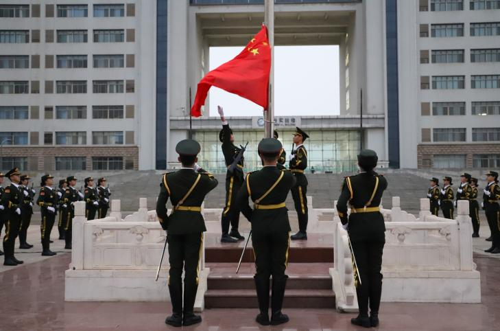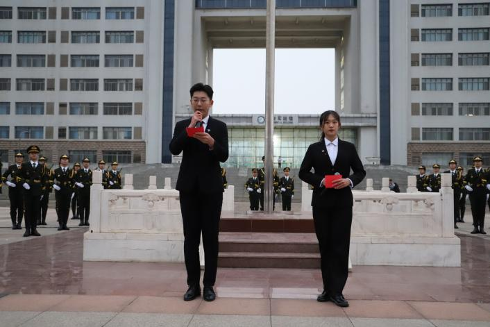 教师代表,校级学生会组织成员,全校青年学生代表2000余人参与此次升旗仪式。 清晨7时整,主持人宣布升旗仪式开始。国旗护卫队成员英姿飒爽、整齐有序的护送国旗走上旗台。迎着清晨的朝阳,伴随着激昂雄壮的国歌声,鲜艳的五星红旗冉冉升起,在肃穆的气氛中迎风飘扬。正值一二九运动爆发的86周年纪念日,在高高飘扬的五星红旗下,历史学院郭伯虎老师进行微党课的讲述。他回溯历史,放眼未来,向大家讲述一二九运动的爆发原因、过程及深远影响,以此激励青年们牢记先辈的光辉事迹,心存爱国热情之血,勇担民族复兴大任。随后,历史学院青年学生代表刘蕾、祝豪泽朗诵申耀东、左权两位革命英雄的家书——《一切安乐只在抗战胜利后》和《左权致叔父书》,他们的朗诵饱含深情、直击人心,用声音勾勒出革命前辈振奋人心的心路历程,使大家在书信中深切感受到革命英雄舍小家为大家、将生命熔铸于民族解放事业的高尚品质,充分展现了青年学子奋发向上的精神风貌。活动最后,在*小妲己直播